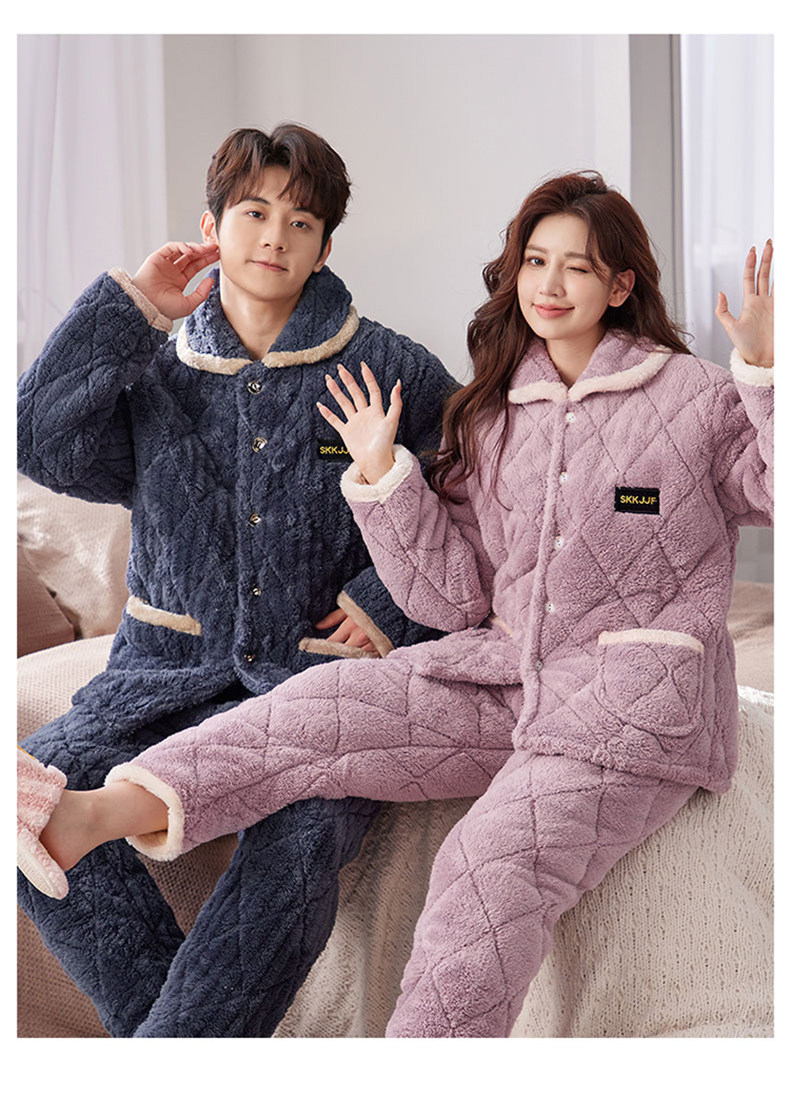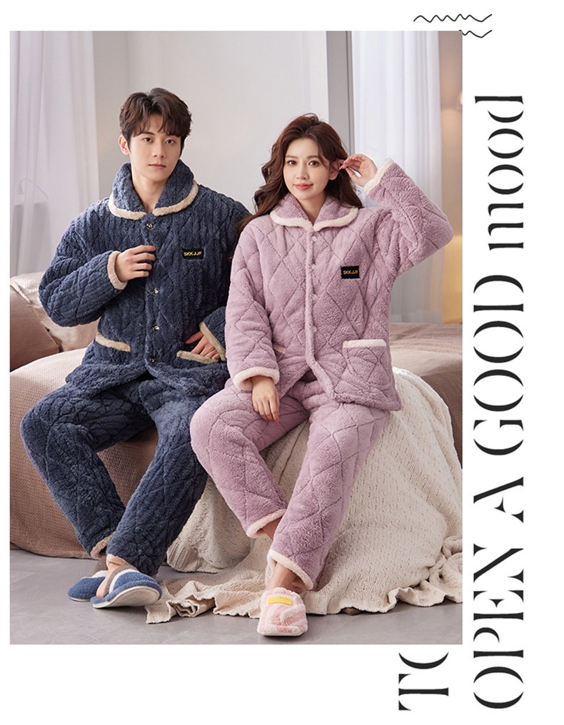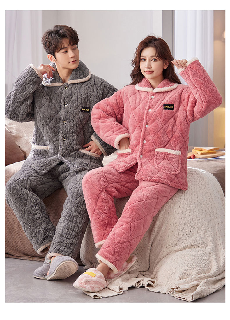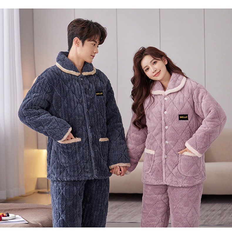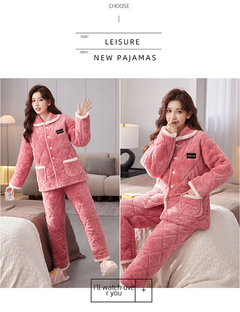 잠옷 여성의 겨울 두꺼운 기모 3 층 면화 재킷 따뜻한 세트 플란넬 플러스 사이즈 겉옷 홈 옷스토어 가기