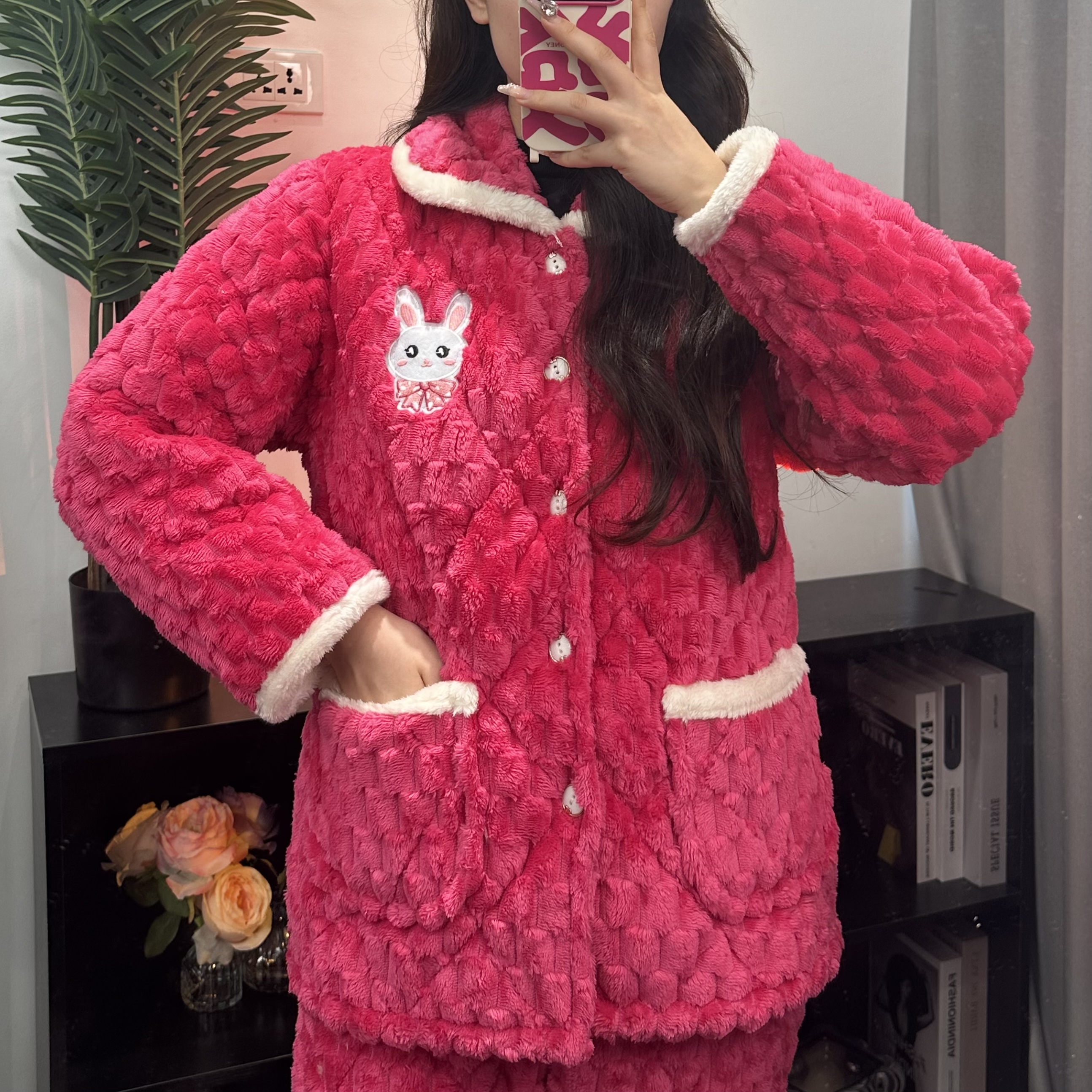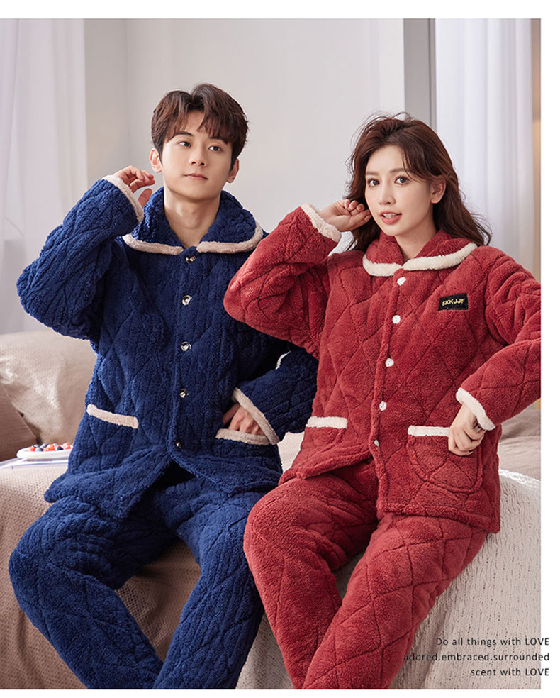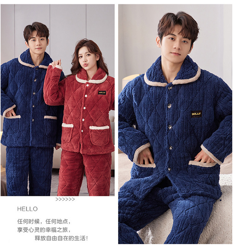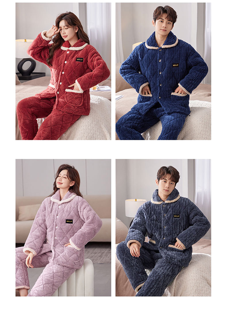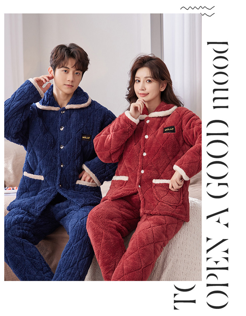 잠옷 여성의 겨울 두꺼운 기모 3 층 면화 재킷 따뜻한 세트 플란넬 플러스 사이즈 겉옷 홈 옷스토어 가기