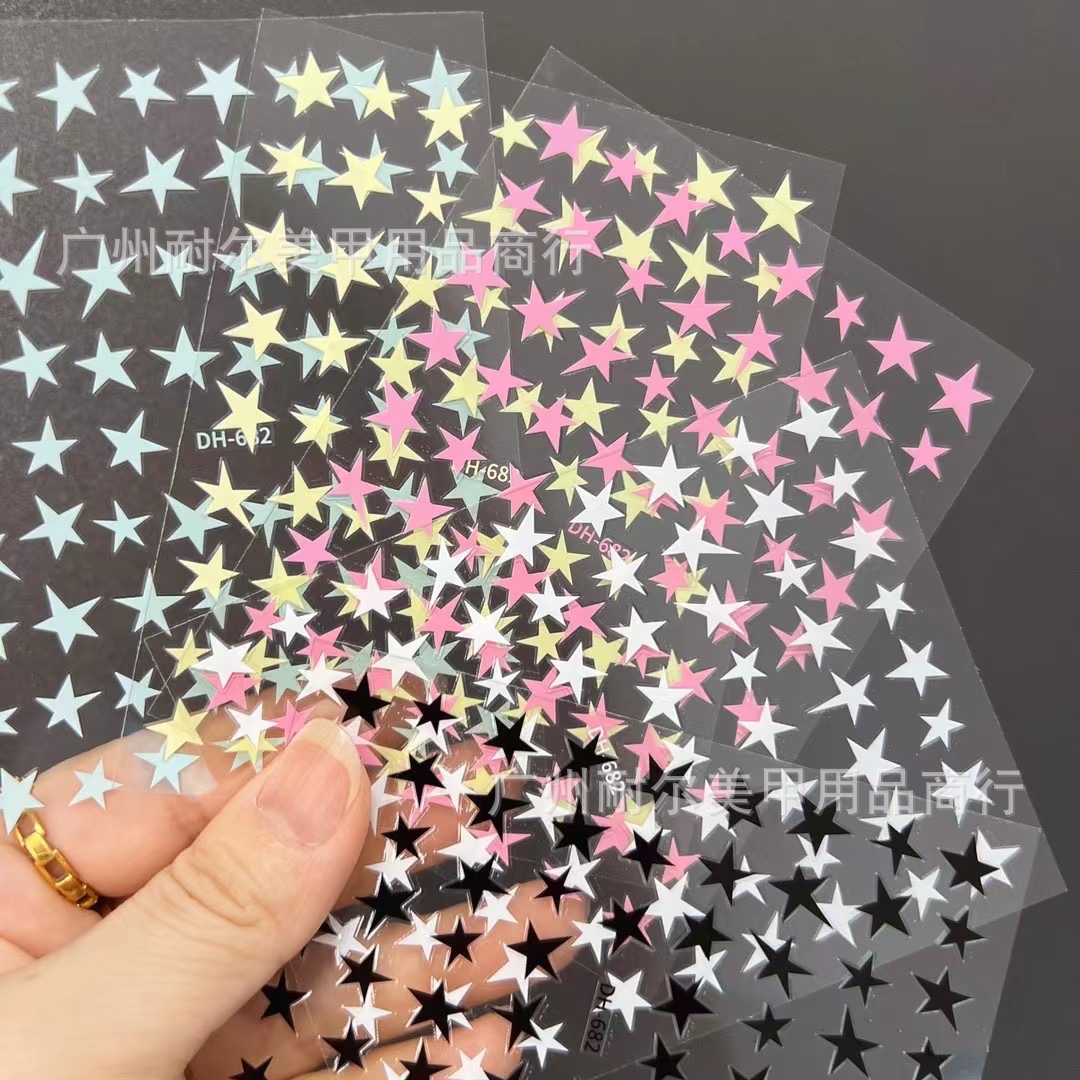 국경 네일 아트 새로운 접착제 형광 다섯개 별 스티커 4 색 옵션 달콤한 그라디언트 순수 색상 종이 카드 포장