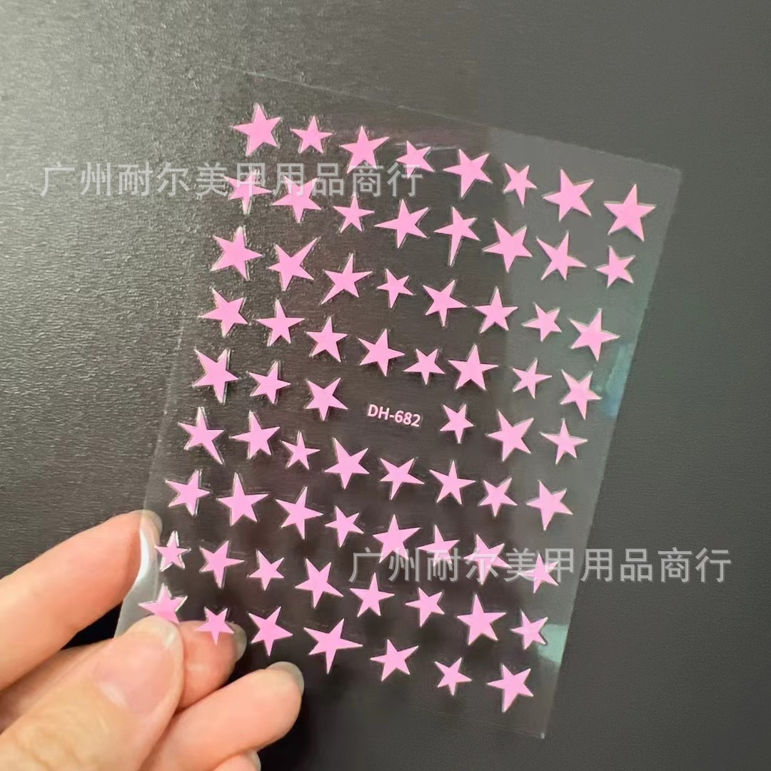 국경 네일 아트 새로운 접착제 형광 다섯개 별 스티커 4 색 옵션 달콤한 그라디언트 순수 색상 종이 카드 포장스토어 가기