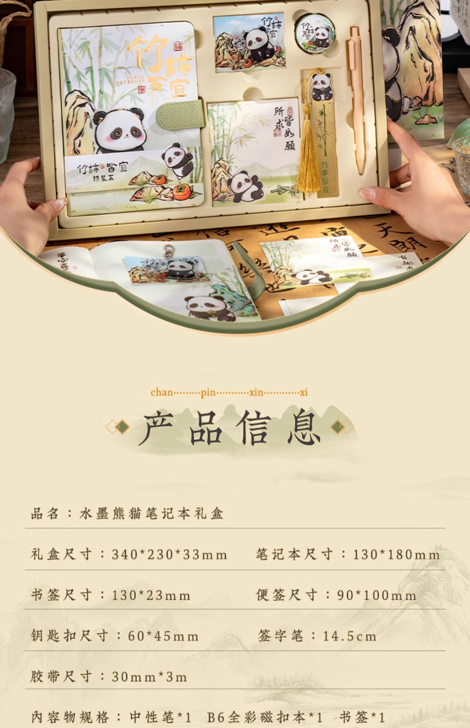 팬더 Wenchuang 노트북 세트 선물 상자 공장 손 책 인쇄 로고 높은 색 가치 졸업 선물 문구스토어 가기