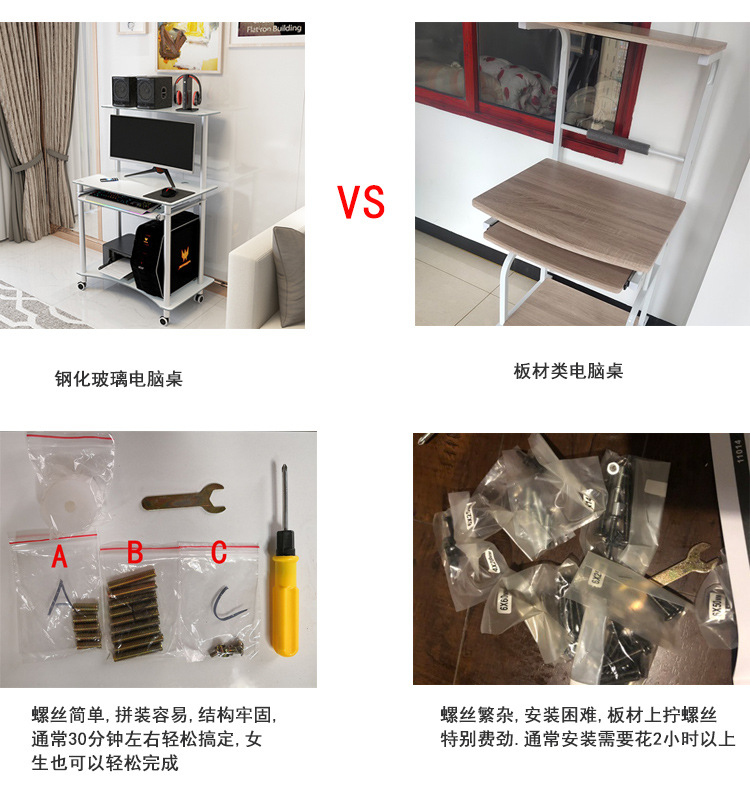 이동식 도서 테이블 더블 W * 미니 작은 아파트 강화 유리 컴퓨터 테이블에 대해 간단한 스타일 테이블 홈 침실