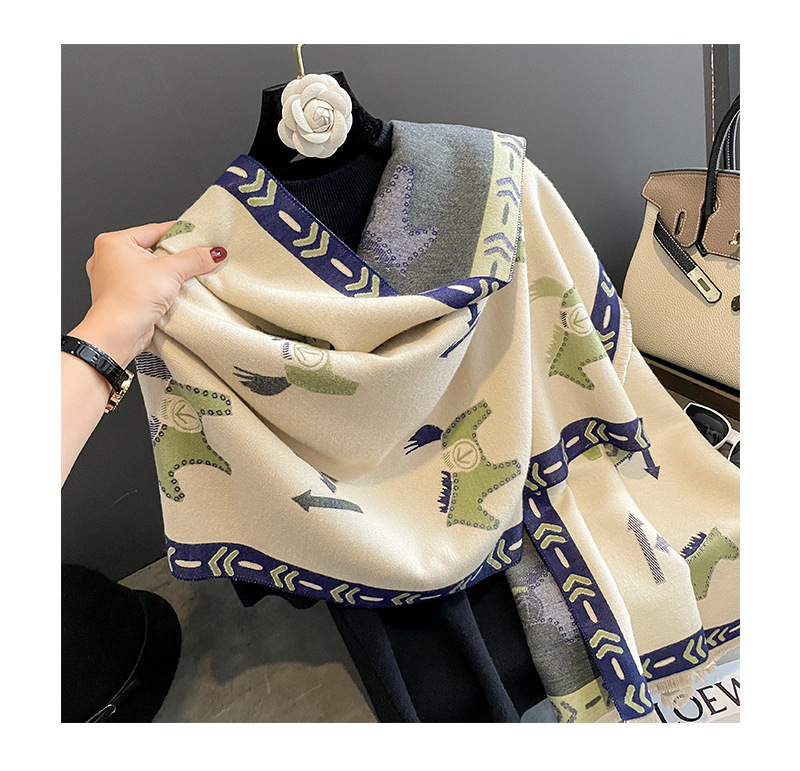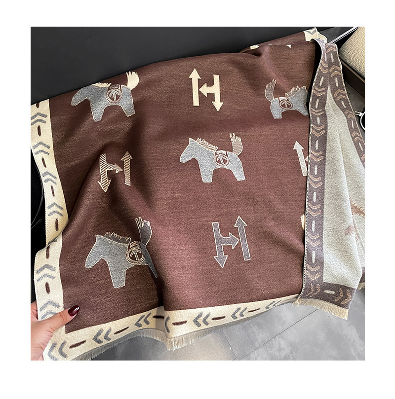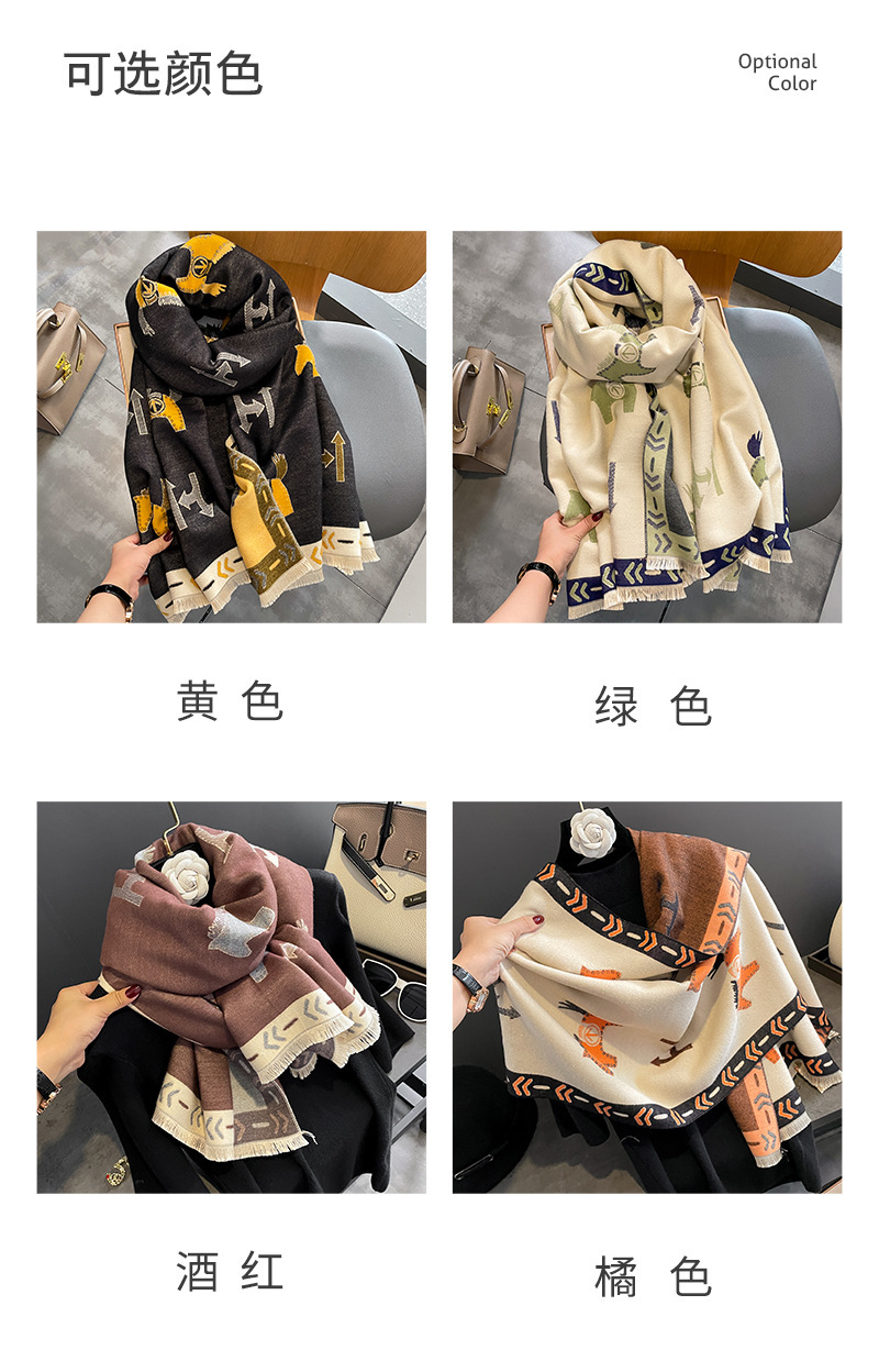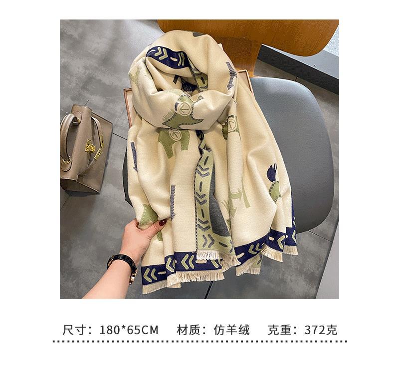 가을과 겨울 새로운 캐시미어 양털 스카프 여성의 두꺼운 따뜻한 유럽과 미국 포니 줄무늬 국경 목도리 따뜻한 스카프스토어 가기