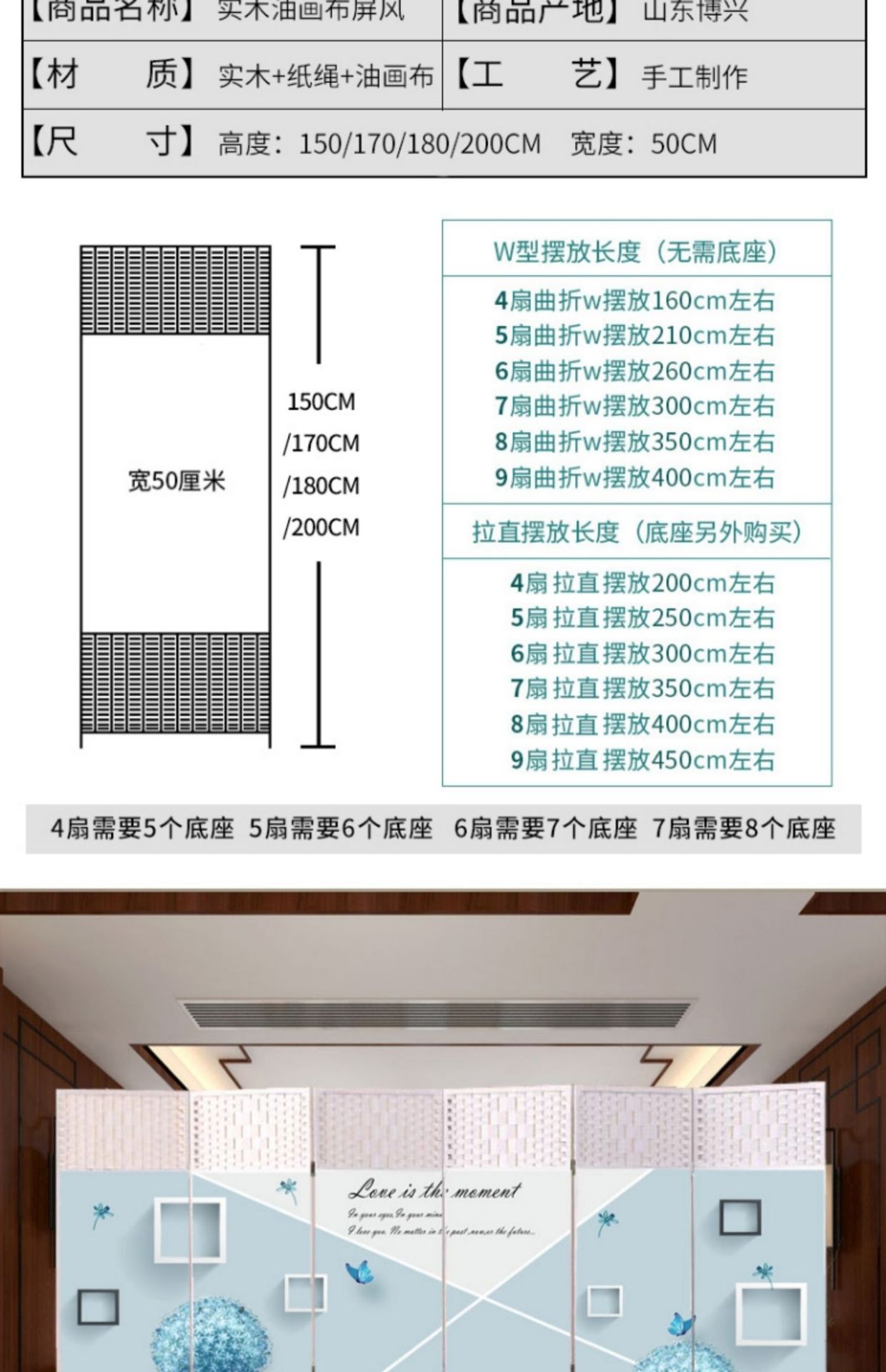 W * 스크린 파티션 간단한 현대 접이식 모바일 거실 침실 사무실 문 현관 커튼 차단 벽 집스토어 가기