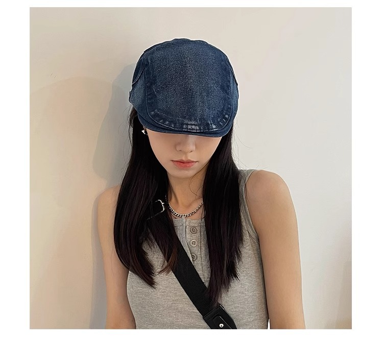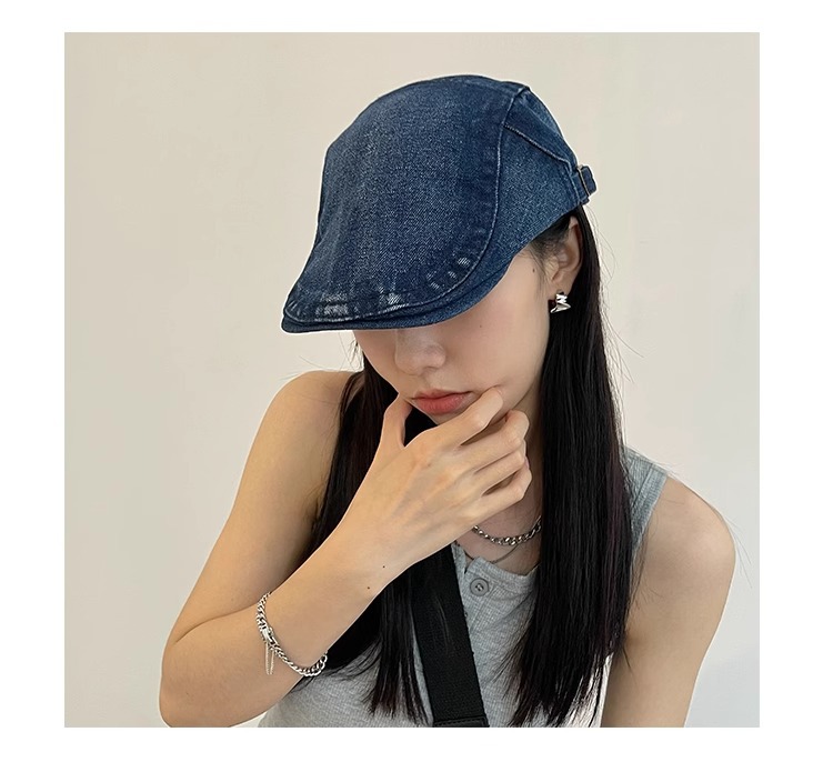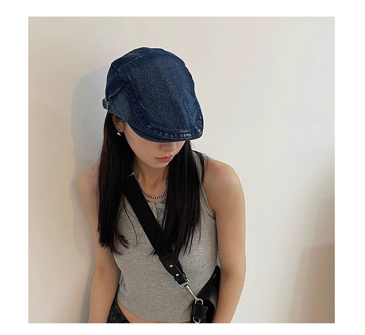 투슈/르네상스-일본 레트로 데님 포워드 캡 여성 패션 조커 캡 베레 타이드