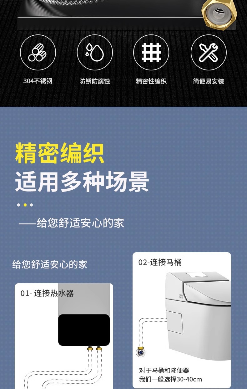 304 스테인레스 스틸 벨로즈 4 점 금속 호스 가스 온수기 화장실 입구 파이프 냉기와 뜨거운 고압 연결 파이프