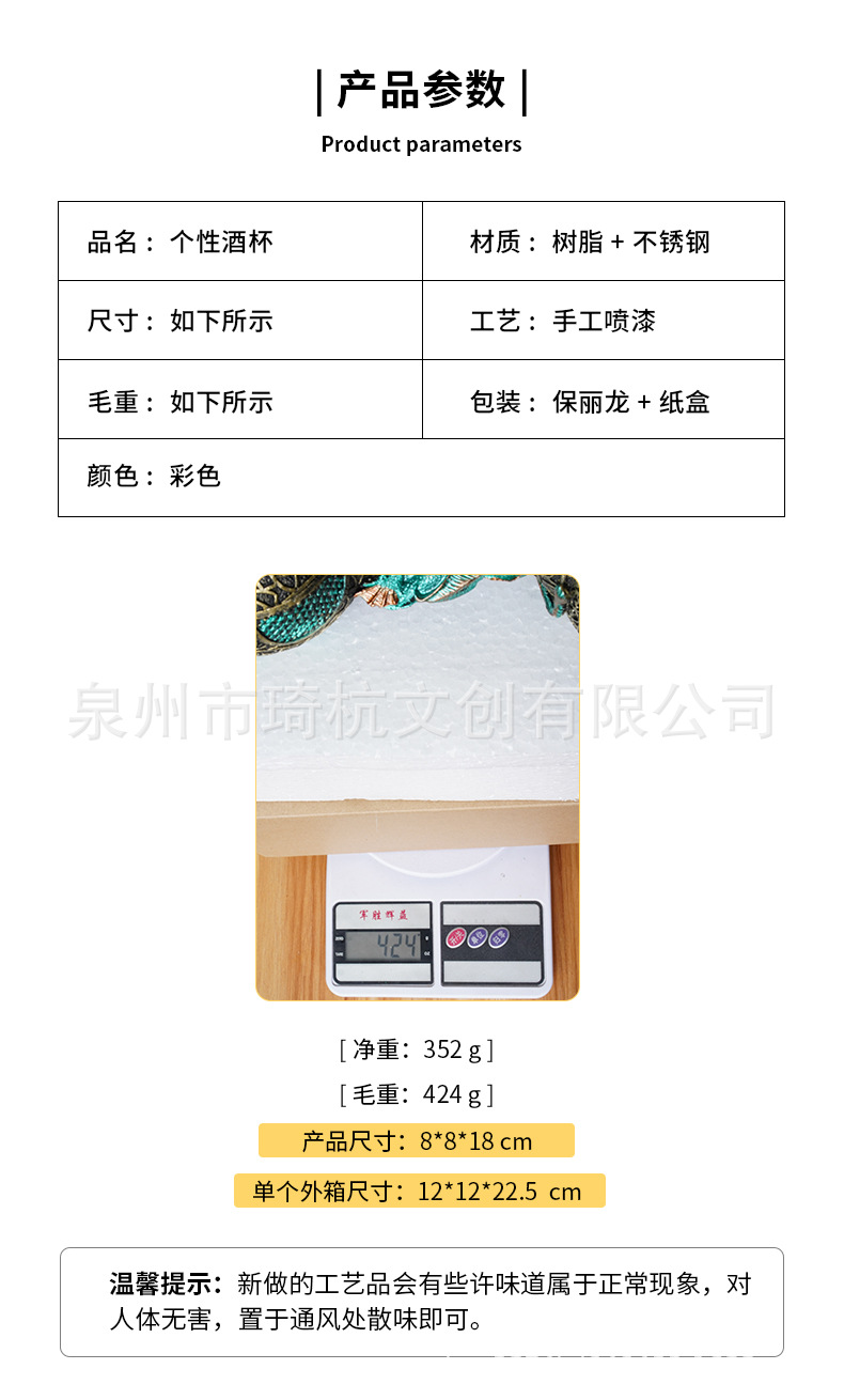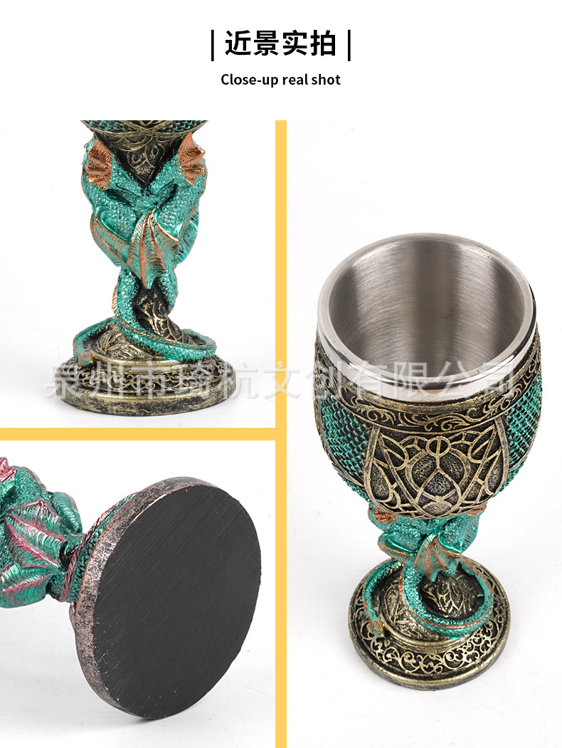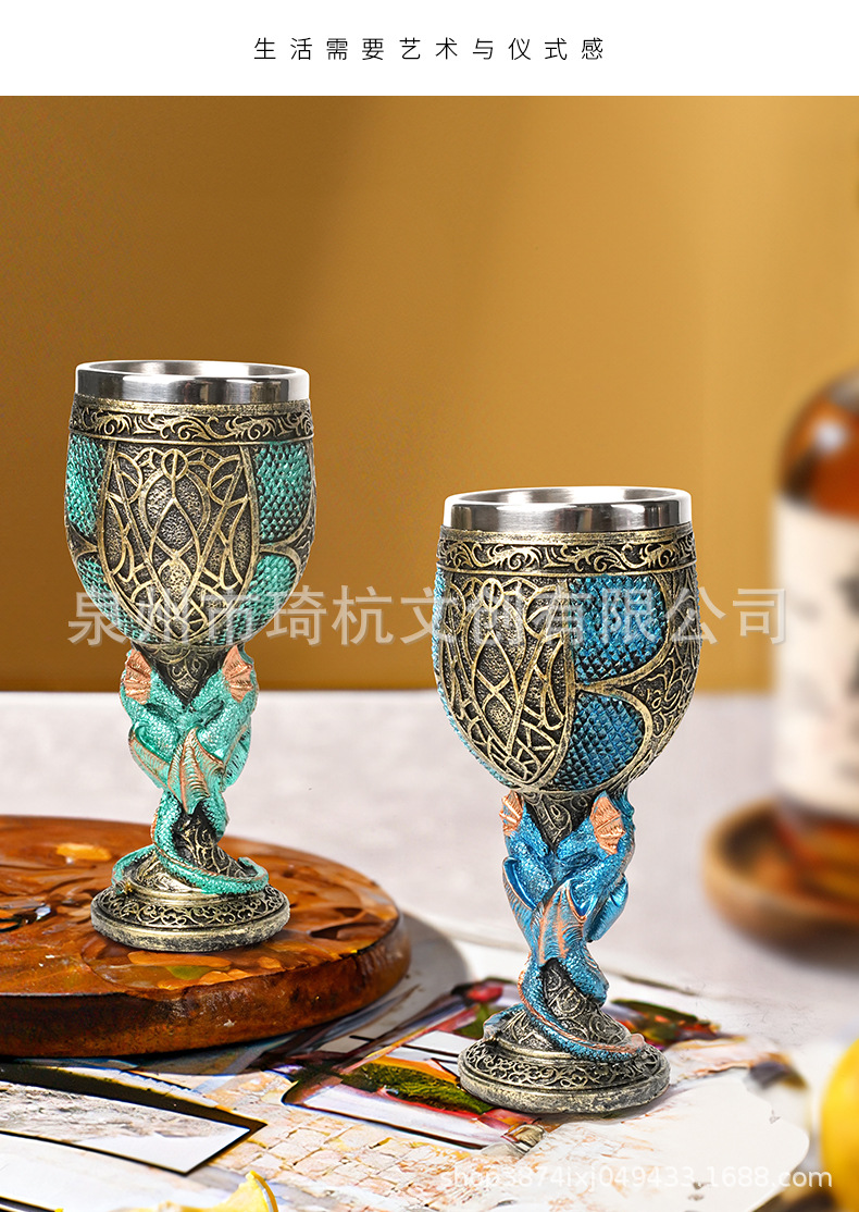 국경 간 뜨거운 쌍용 고블 식품 등급 스테인레스 스틸 고블 와인 파티 수지 공예 장식 장식품