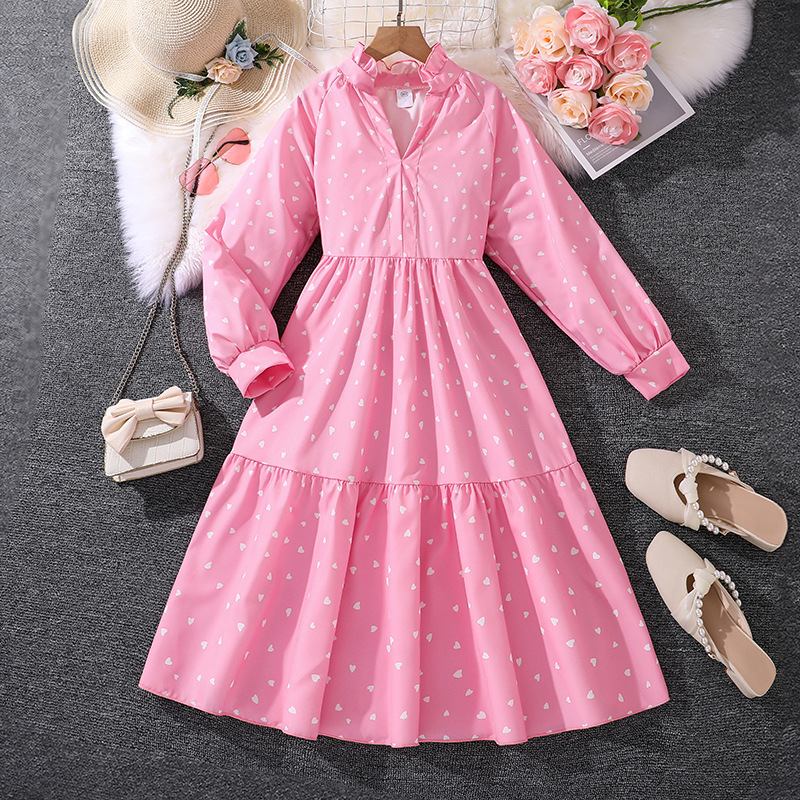 어린 소녀 치마 봄 어린이 착용 국경 대외 무역 새로운 인쇄 긴 소매 공주 스타일 6-12 세 소녀 원피스스토어 가기