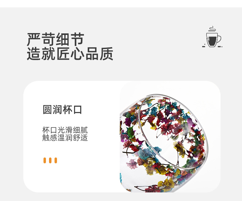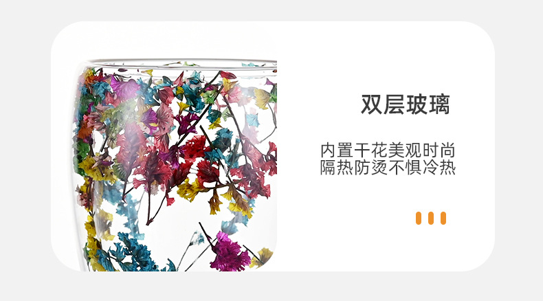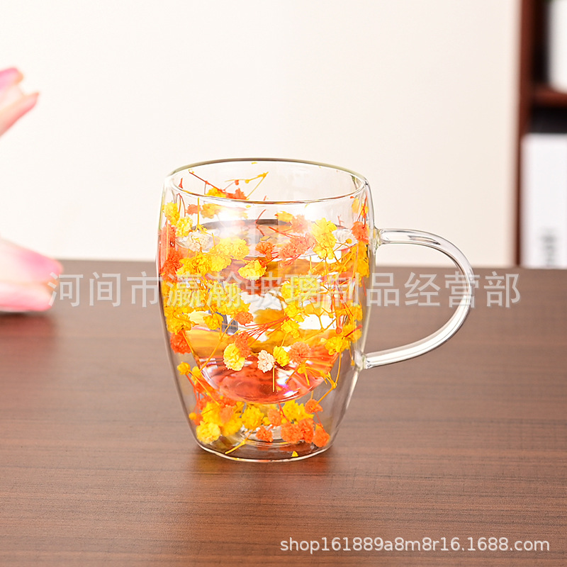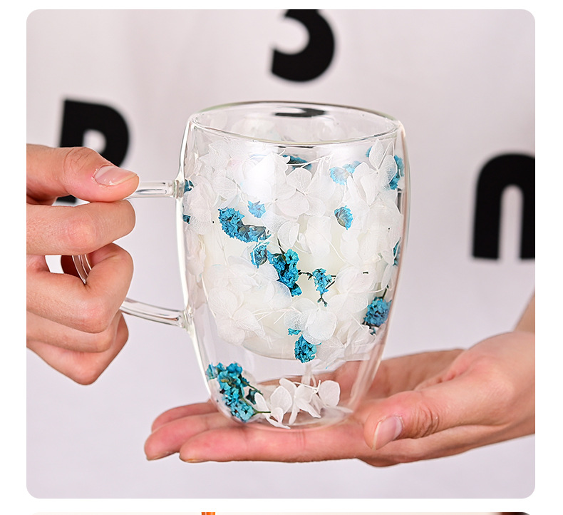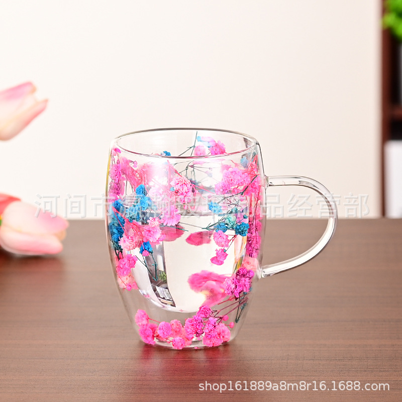 유리 새로운 붙박이 꽃 말린 꽃 컵 높은 붕규산염 유리 음료 컵 절연 이중층 컵스토어 가기