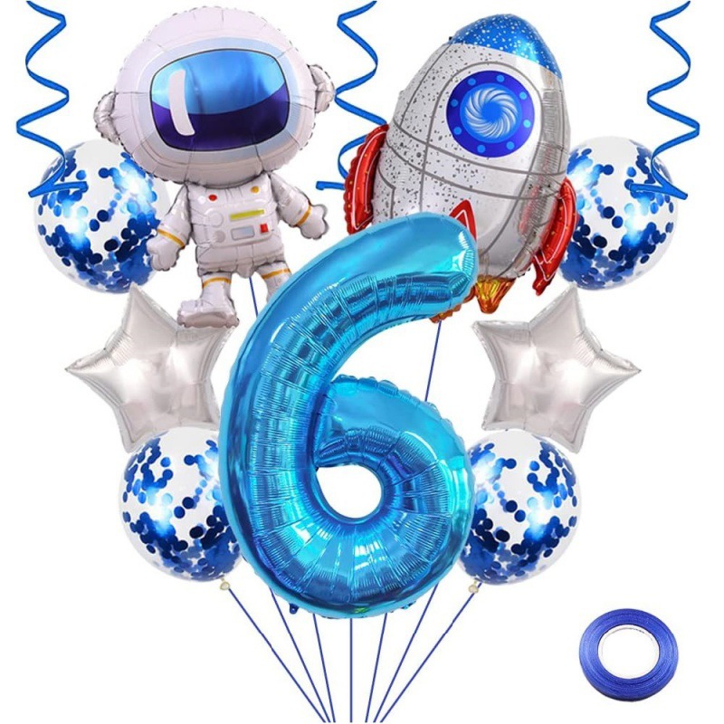 우주 비행사 로켓 알루미늄 필름 풍선 우주 파티 풍선 32 인치 블루 디지털 생일 파티 장식