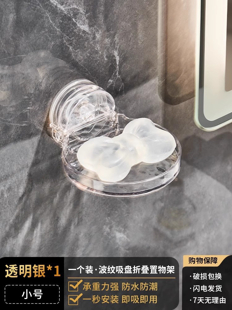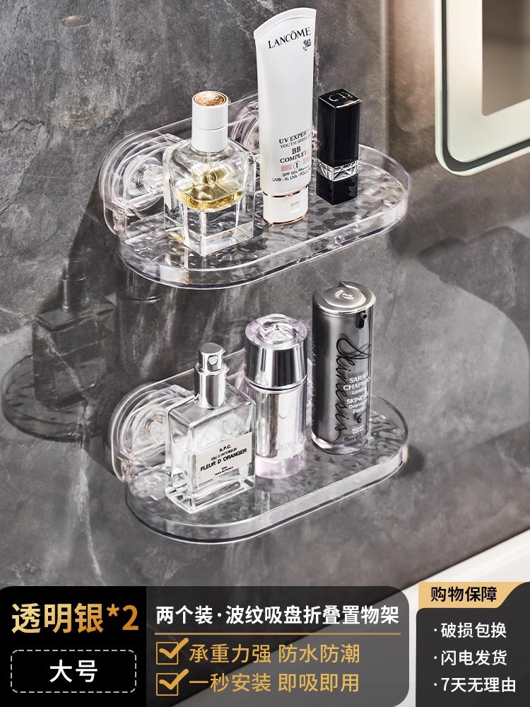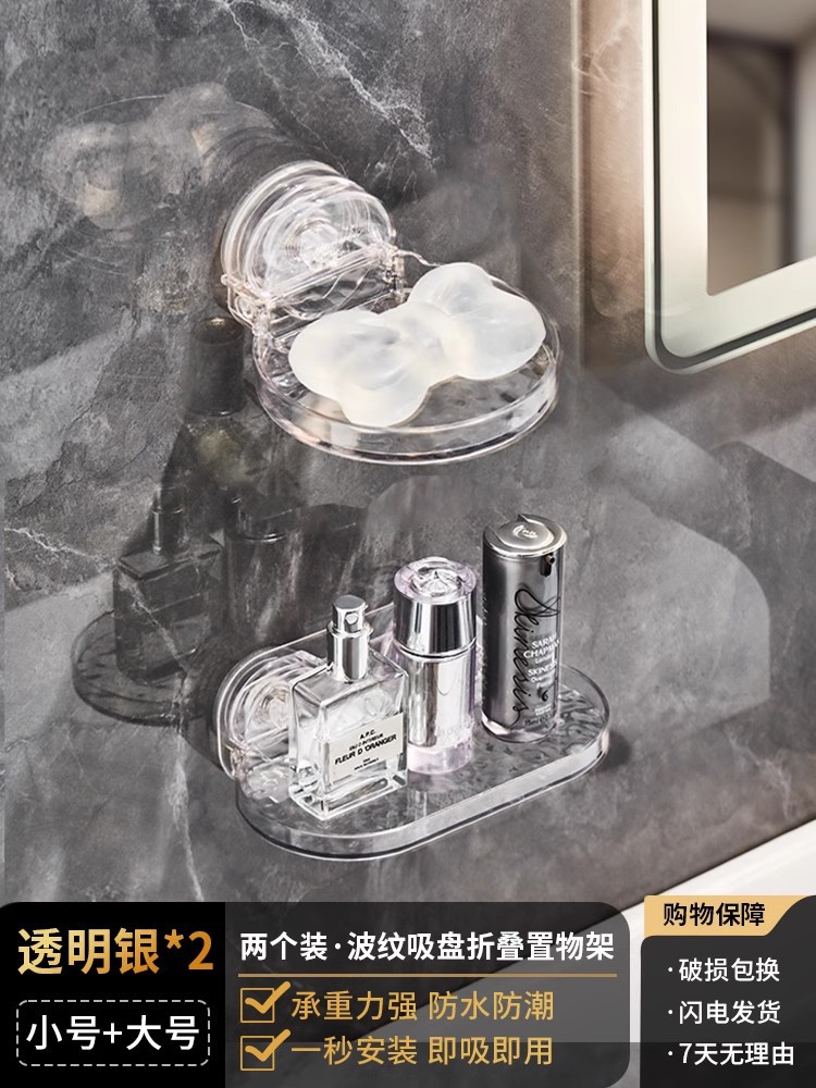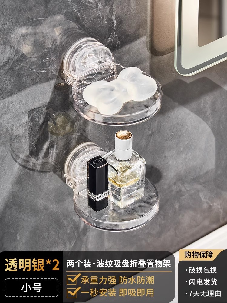 • ☆★[투명 실버 소형*2] 흡착컵 수납선반(접이식)☆★