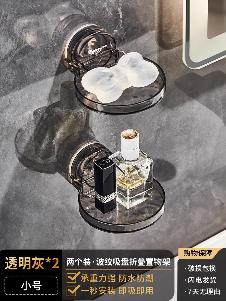 • ☆★【투명 회색 소형*1】 흡착식 선반 (접이식)☆★