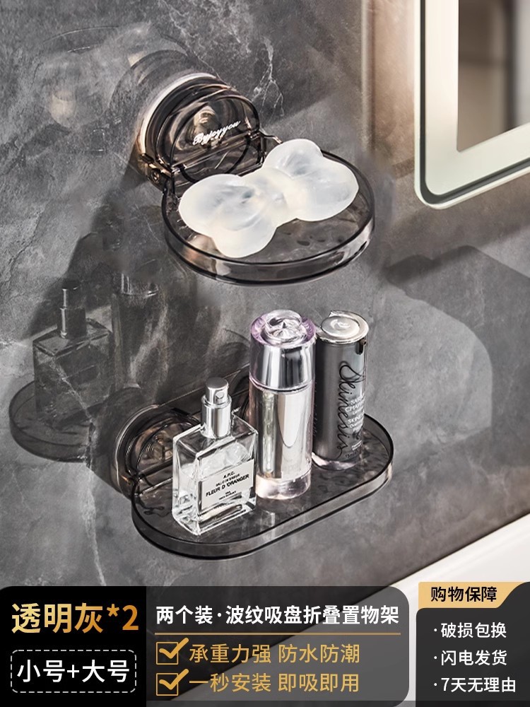 • ☆★[투명회색 소형*1+대형*1] 흡착컵 수납선반(접이식)☆★