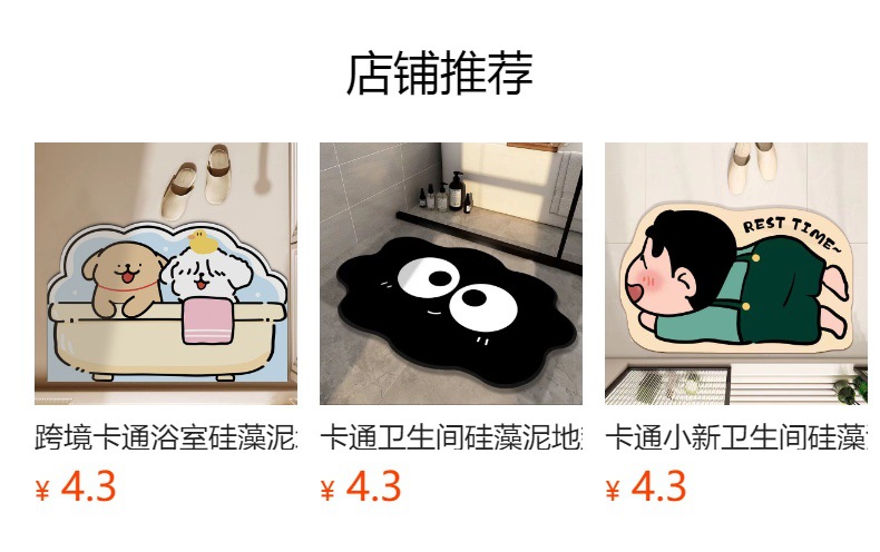 만화 욕실 바닥 매트 화장실 흡수성 Diatom 진흙 미끄럼 방지 발 매트 화장실 문 특수 모양의 빠른 건조 더러운 바닥 매트스토어 가기