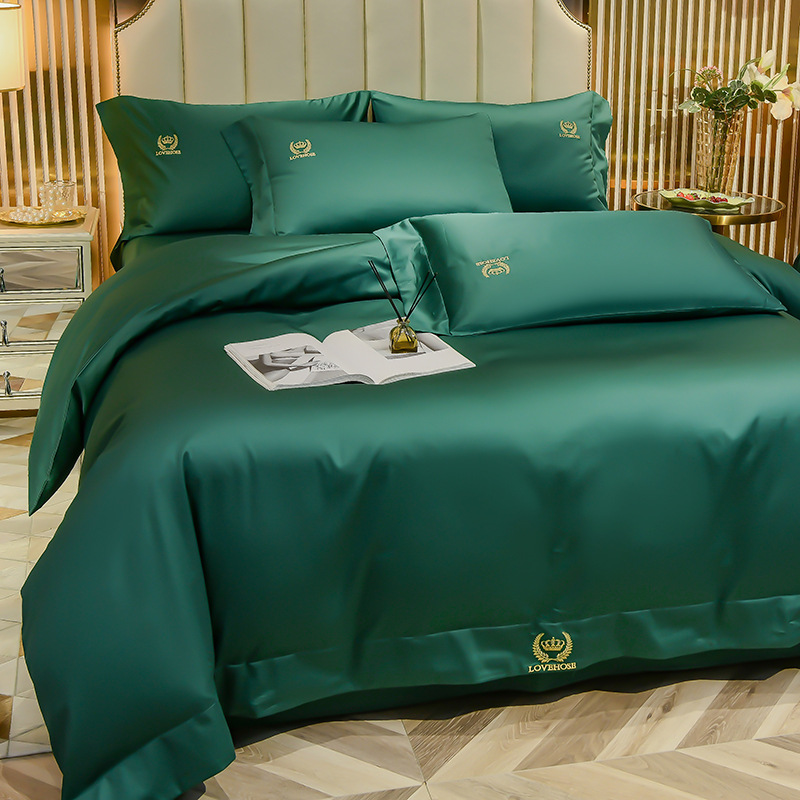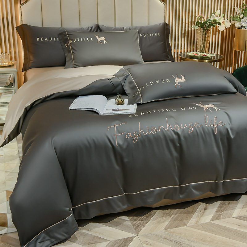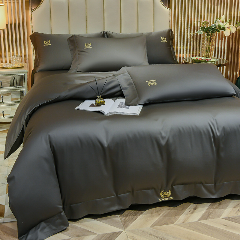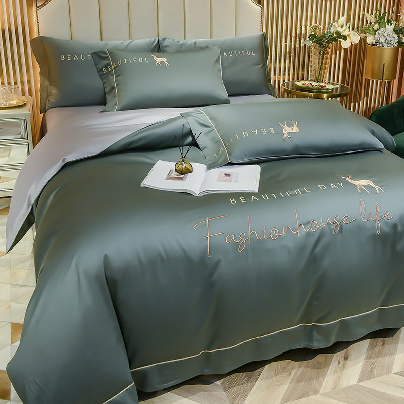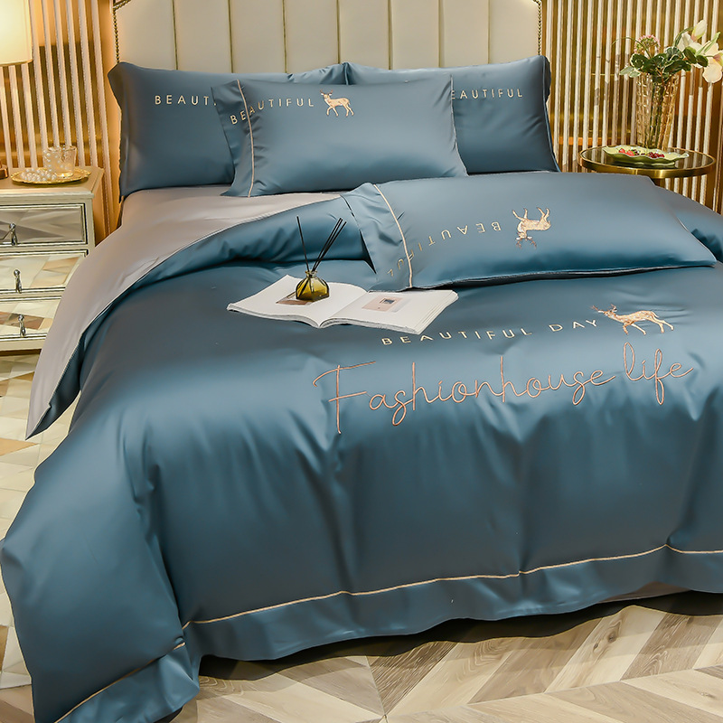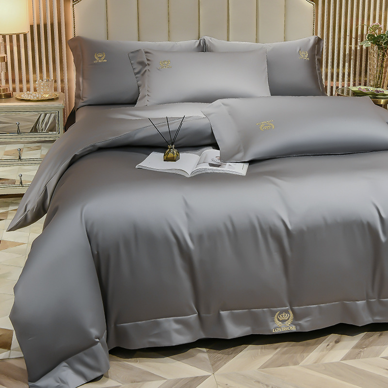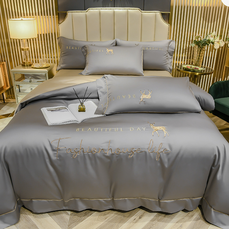 4 피스 침대 퀼트 커버 물로 씻은 면 고급 실키 아이스 실크 침대 모자 퀼트 커버 봄과 가을 자수 퀼트 커버