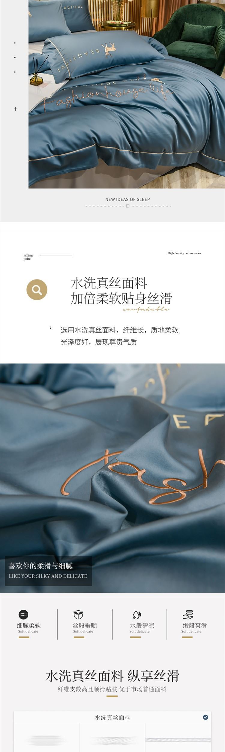 4 피스 침대 퀼트 커버 물로 씻은 면 고급 실키 아이스 실크 침대 모자 퀼트 커버 봄과 가을 자수 퀼트 커버스토어 가기