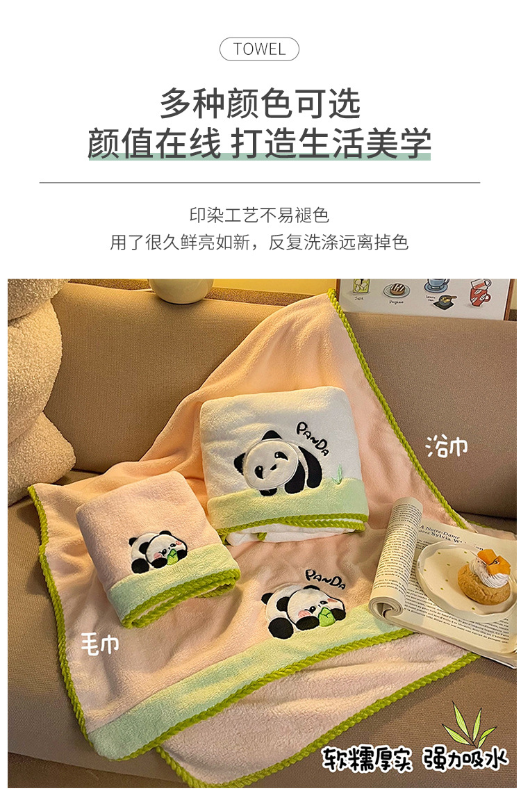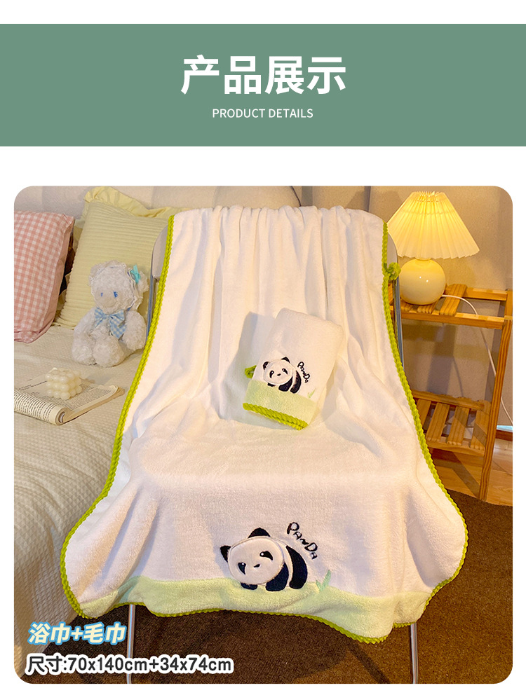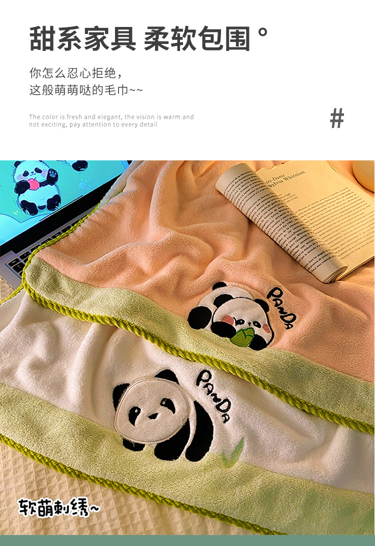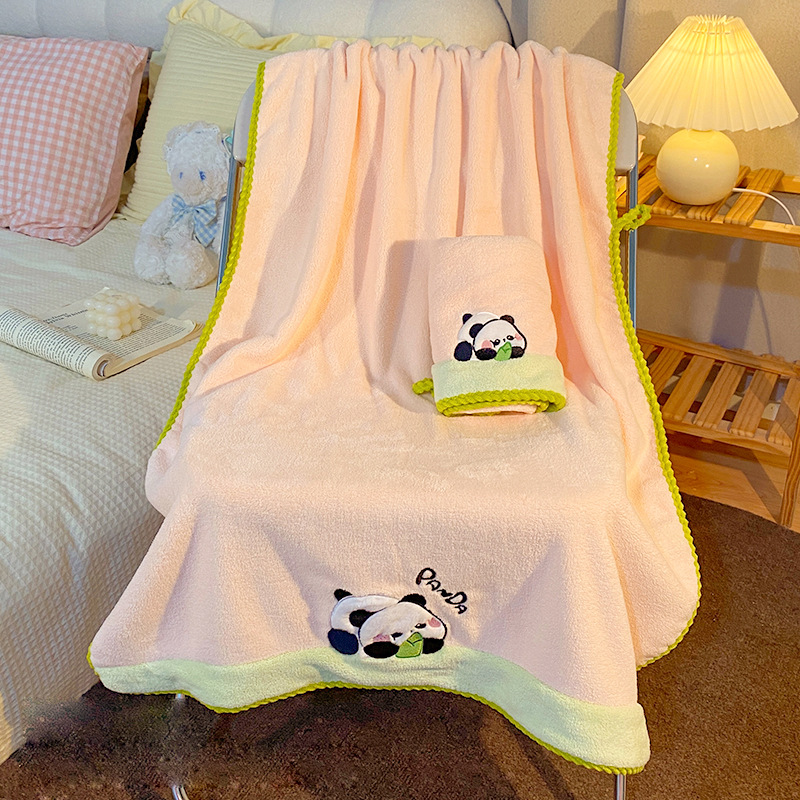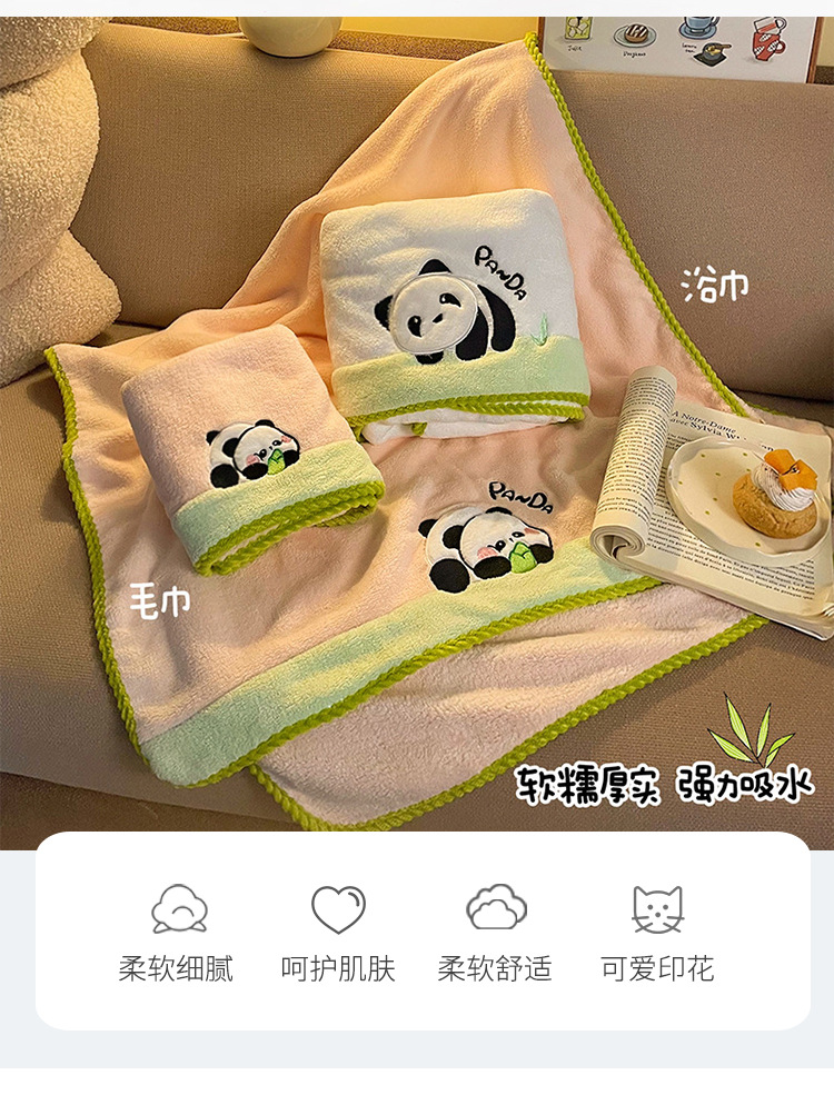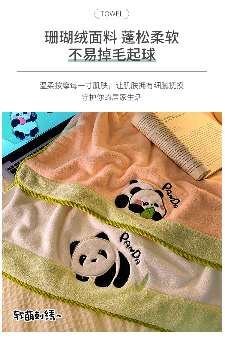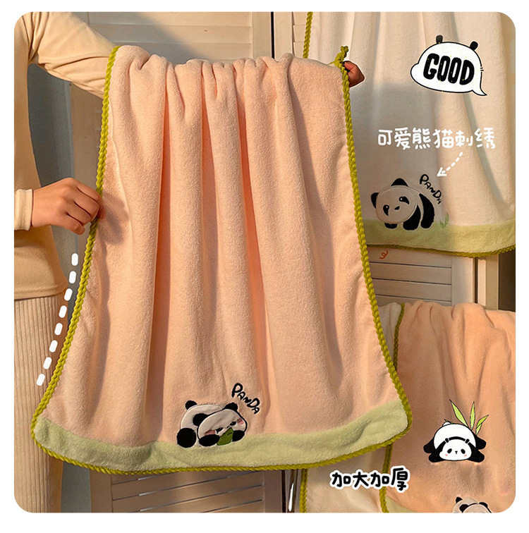귀여운 팬더 목욕 타월 도매 산호 양털 흡수 목욕 가운 두꺼운 만화 성인 목욕 큰 수건스토어 가기