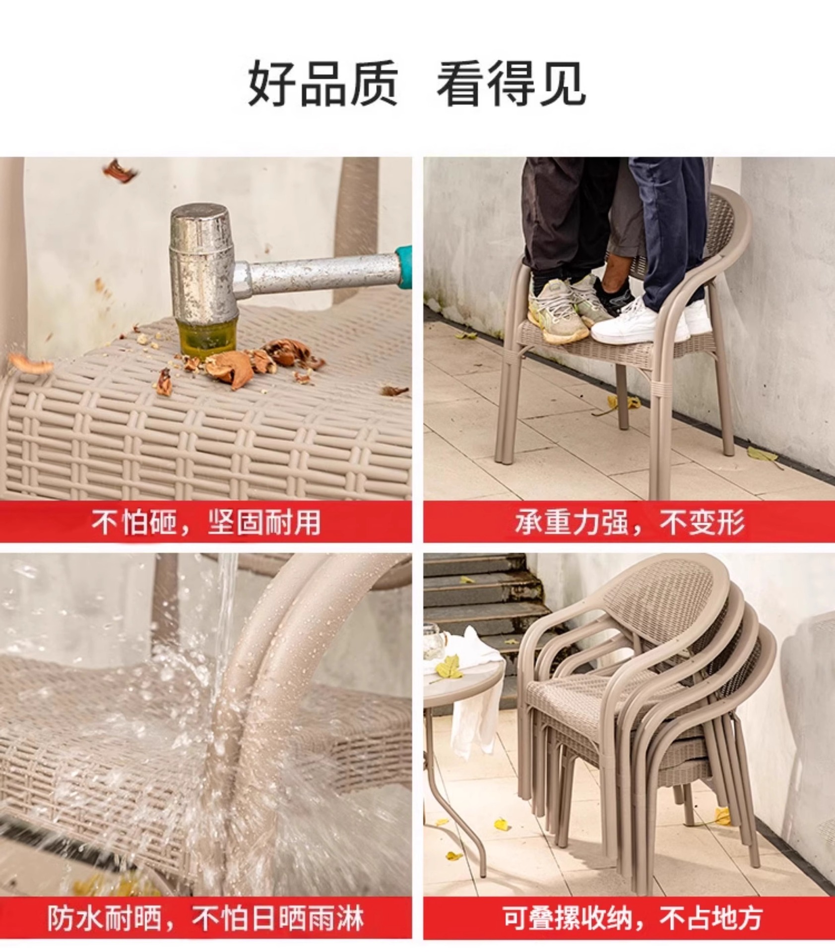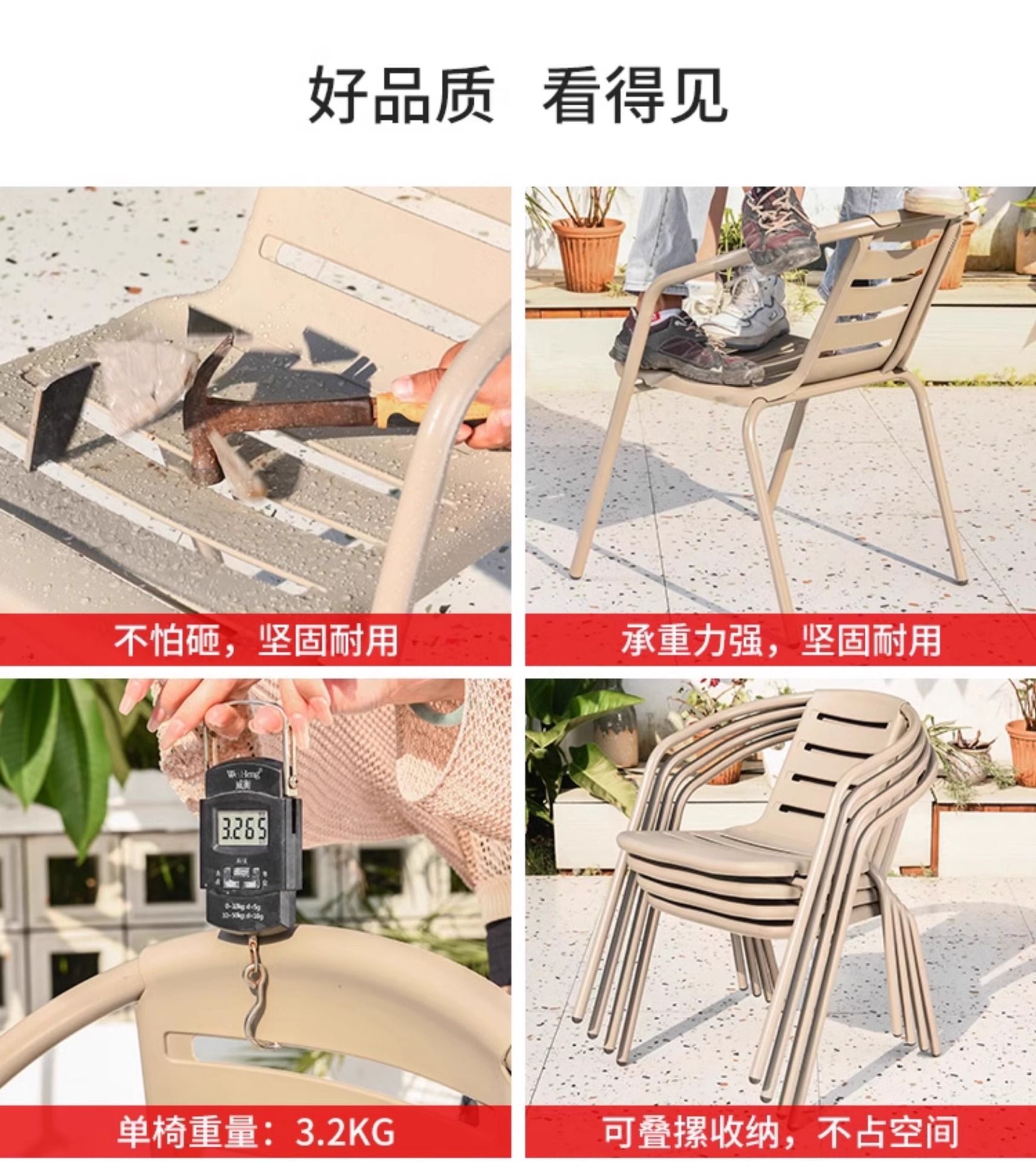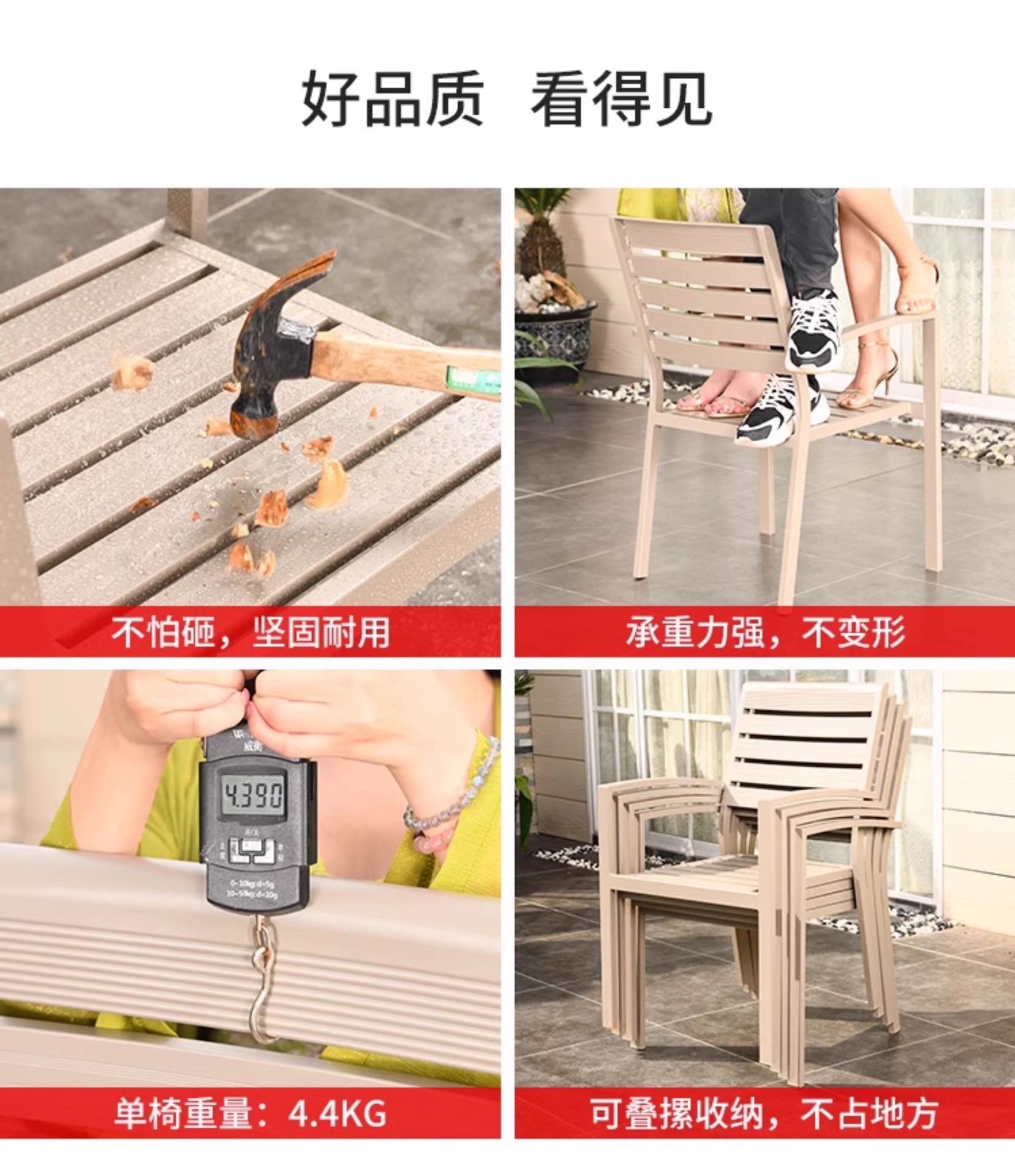 야외 레저 의자 야외 식사 의자 단일 의자 등받이 의자 플라스틱 의자 안뜰 정원 우유 차 야외 방비 선 스크린