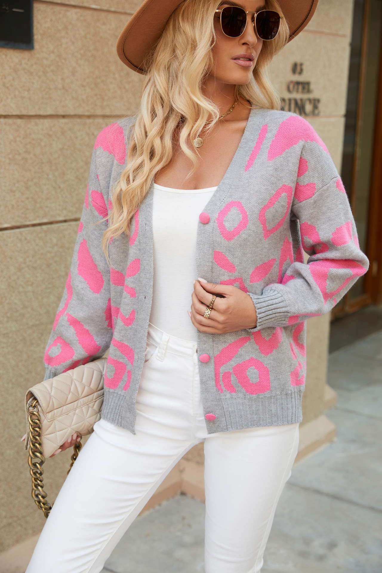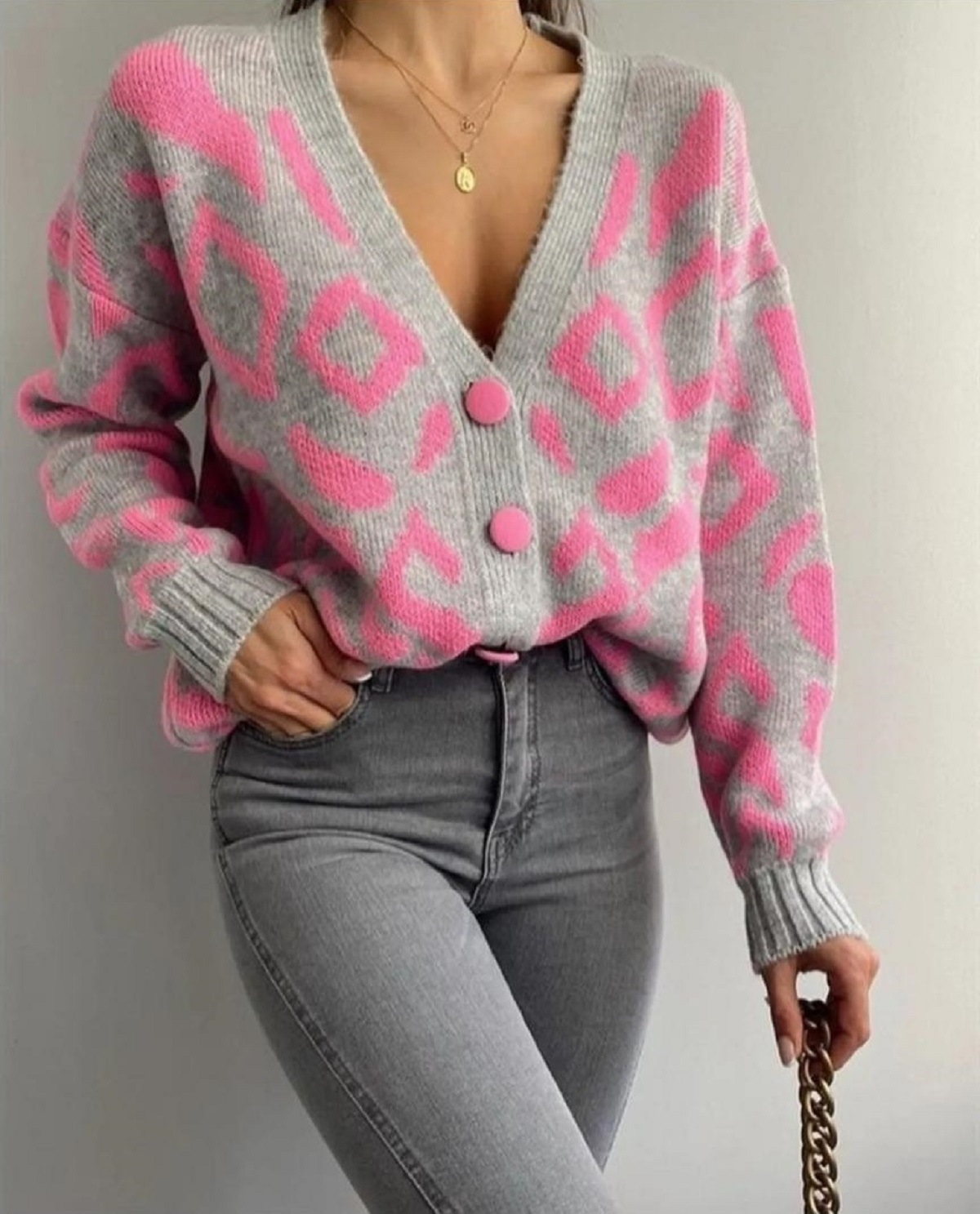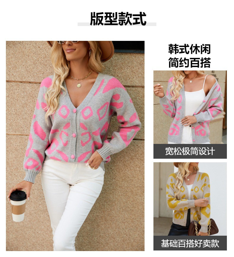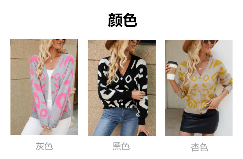 레오파드 무늬 니트 카디건 여성 가을과 겨울 유럽과 미국 자카드 V-Neck 긴 소매 싱글 브레스트 니트 스웨터 재킷 카디건 여성