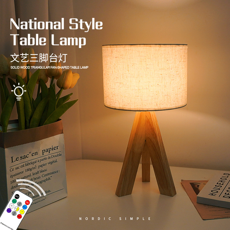 북유럽 주름 꽃 테이블 램프 빈티지 침실 램프 단단한 나무 인터넷 유명한 원격 제어 야간 조명 LED 대기 램프