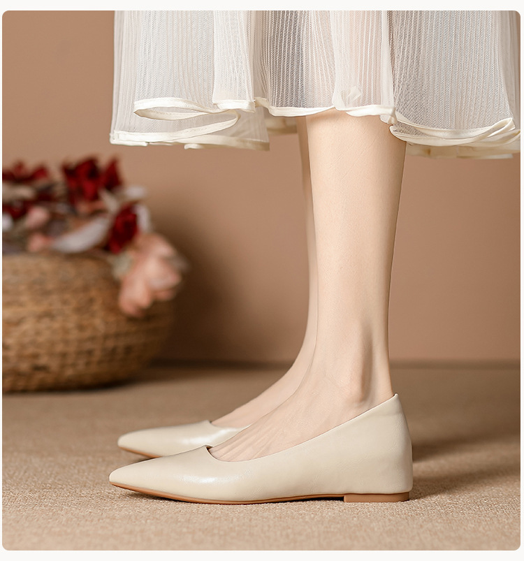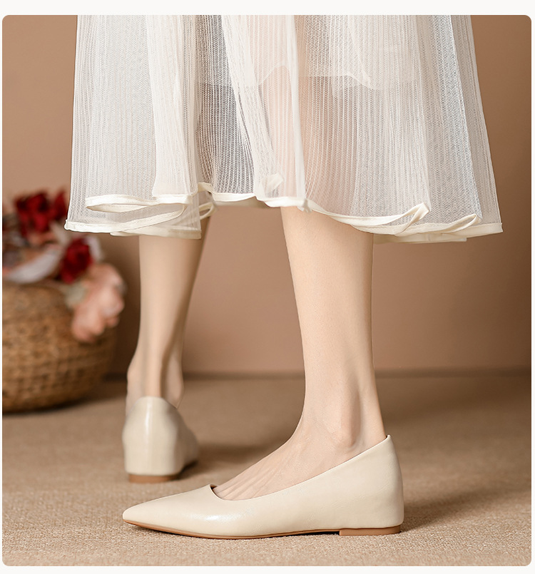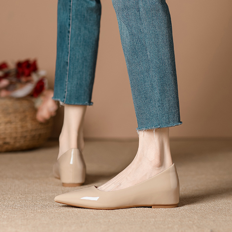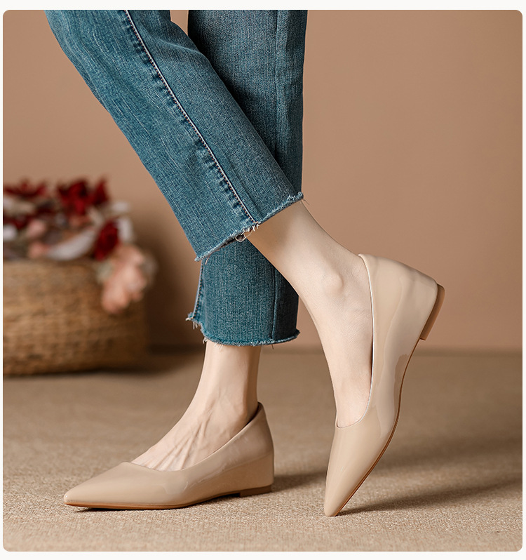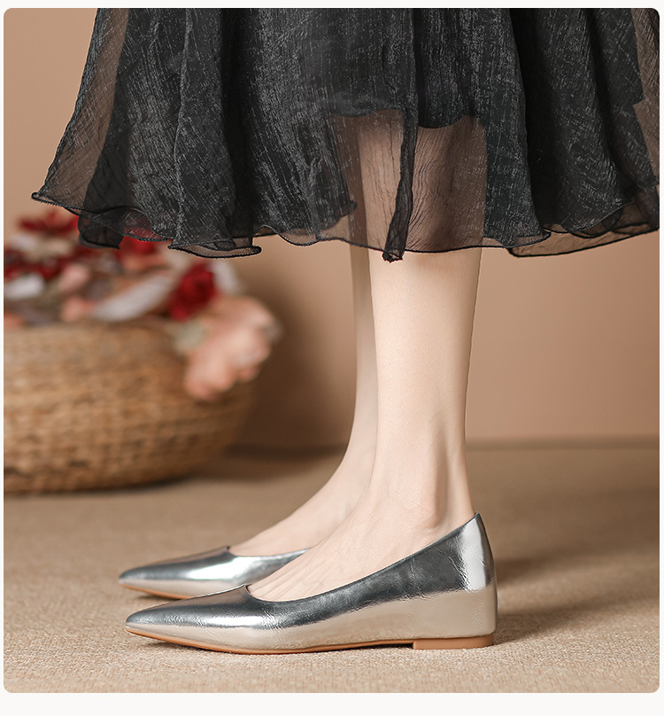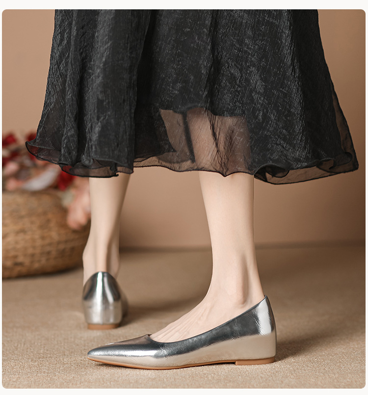플랫 신발 여성의 2024 여름 새로운 인테리어 높이 증가 레트로 올매치 포인팅 우아한 요정 부드러운 싱글 신발 여성
