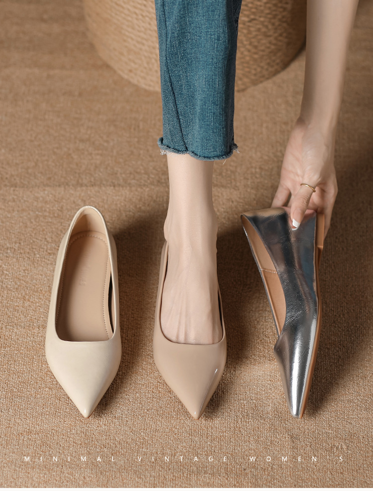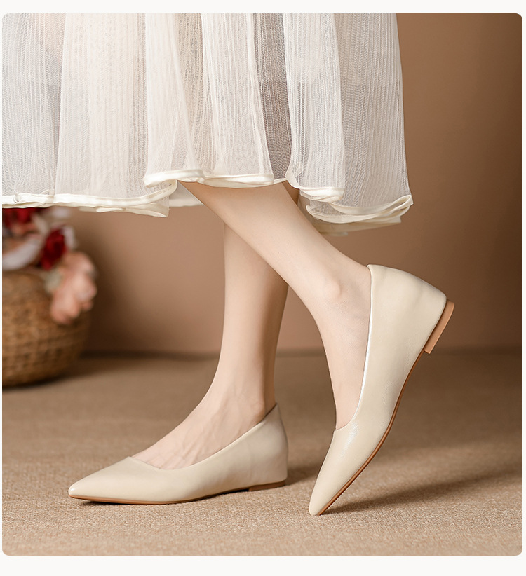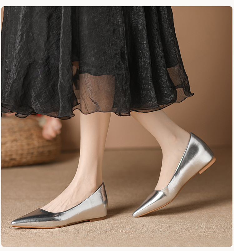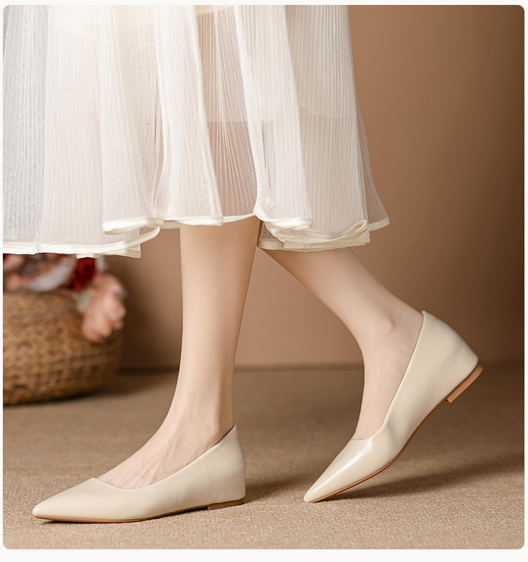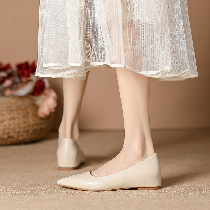 플랫 신발 여성의 2024 여름 새로운 인테리어 높이 증가 레트로 올매치 포인팅 우아한 요정 부드러운 싱글 신발 여성