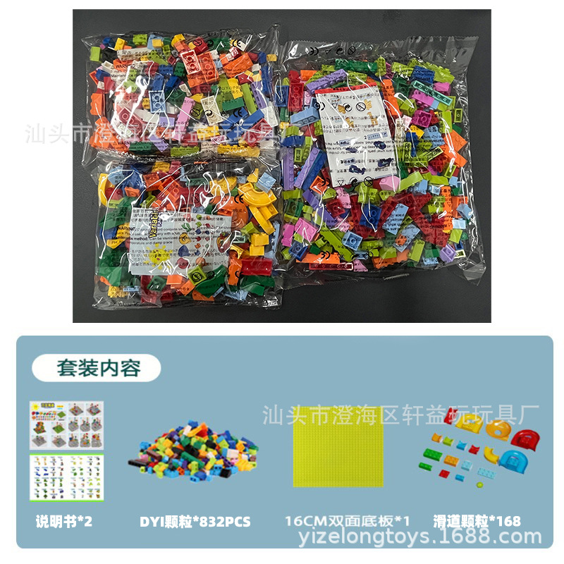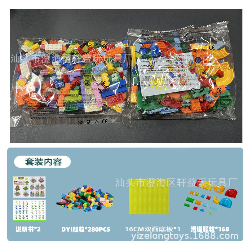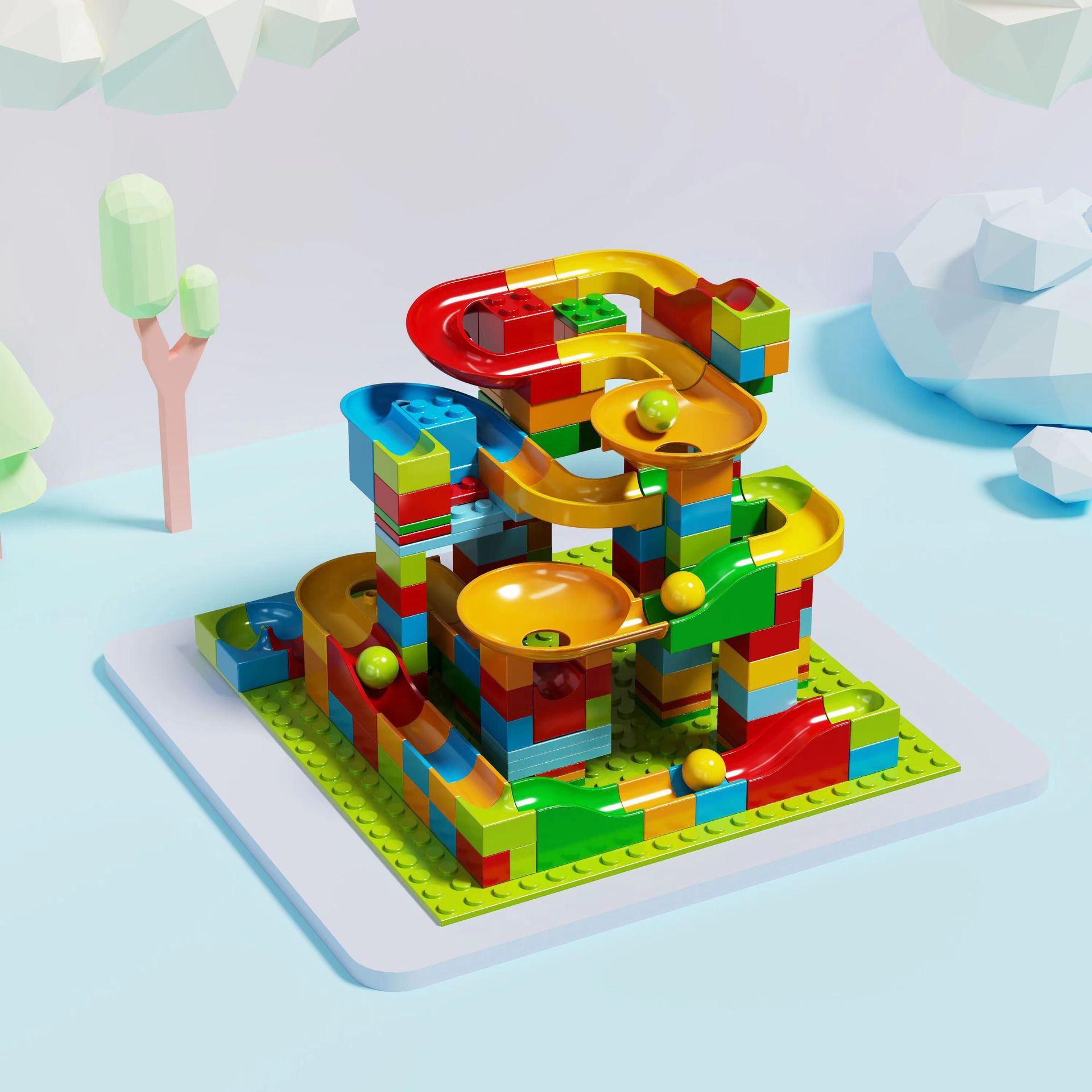 Qiqu 빌딩 블록 슬라이드 유원지 멀티 모양의 빌딩 블록 장난감 볼 슬라이드 빌딩 블록 계단스토어 가기