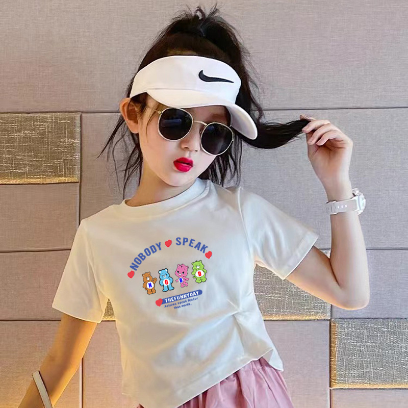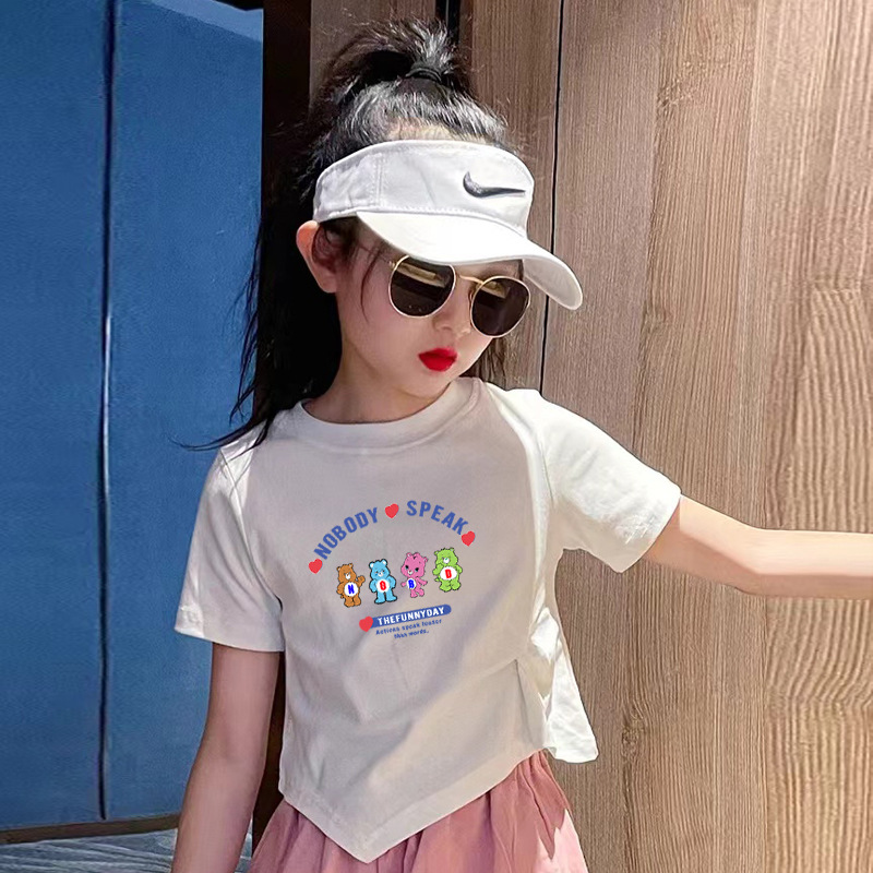 소녀의 만화 서양식 퓨어 코튼 쇼트 탑 여름 원피스 소녀 아기의 슬림 핏 크루 넥 화이트 반팔 티셔츠스토어 가기
