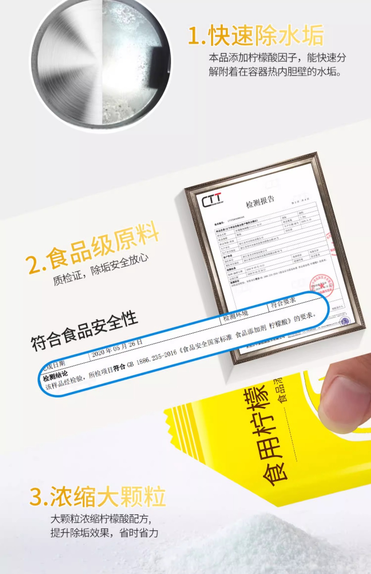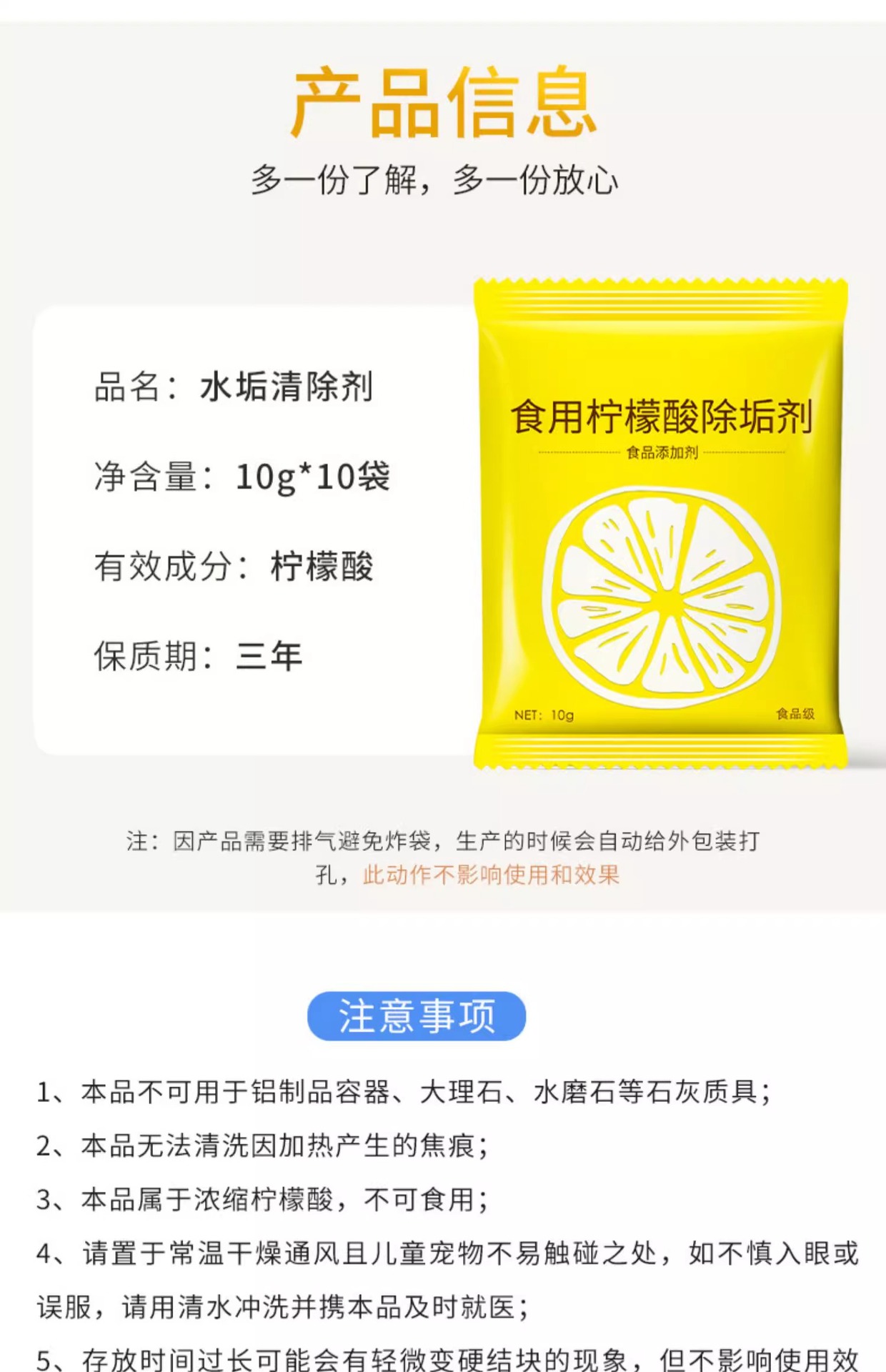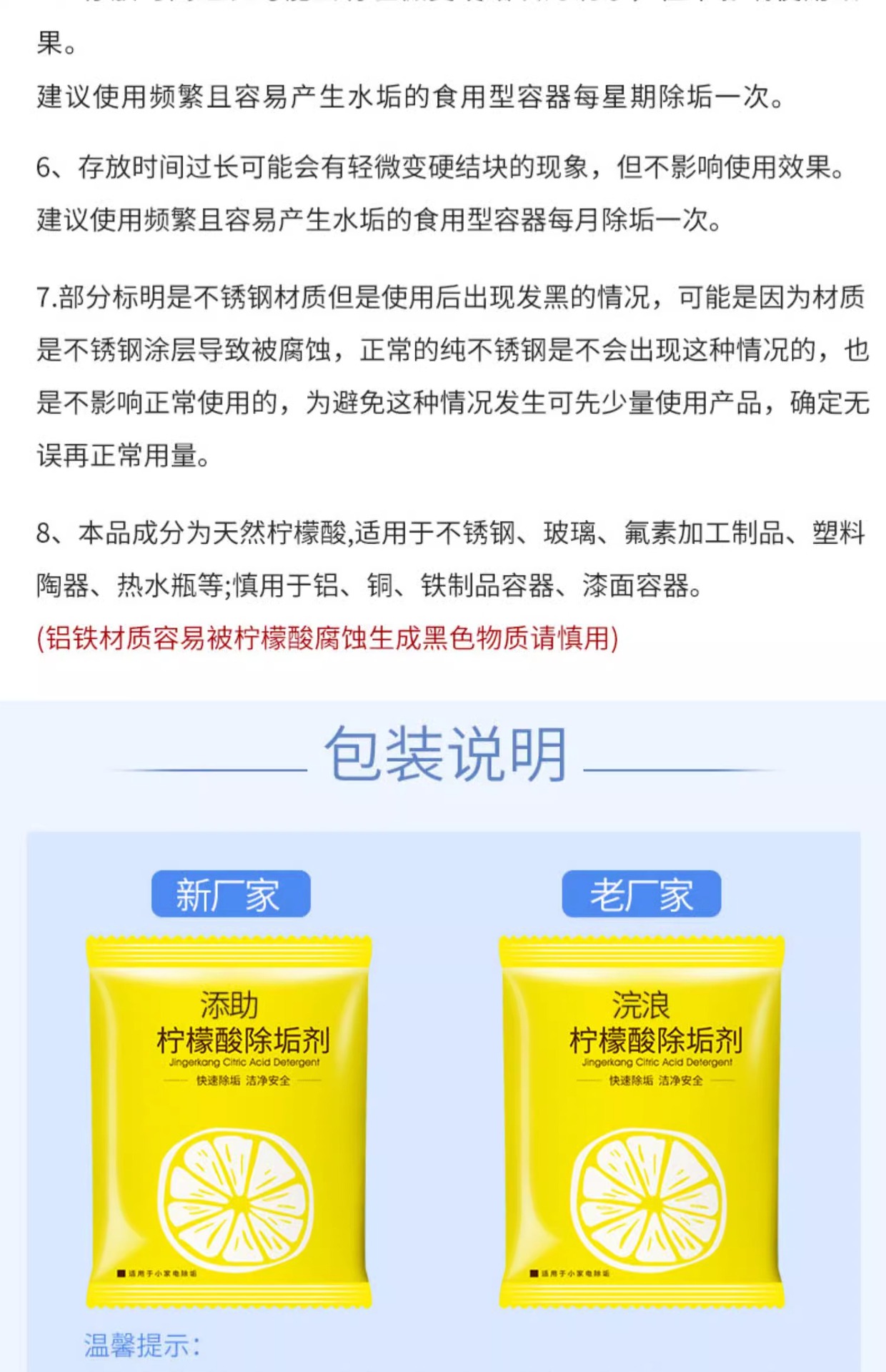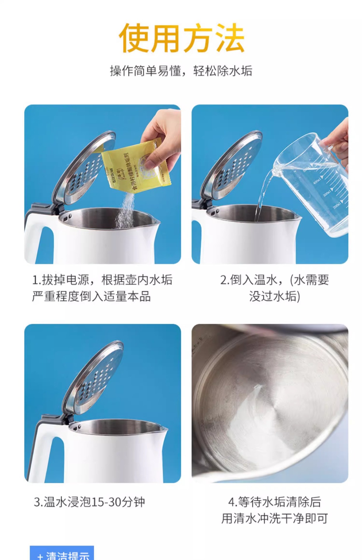 식품 등급 구연산 세제 아기 전기 주전자 저울 제거 차 스케일 청소 뜨거운 물 주전자 저울 제거스토어 가기