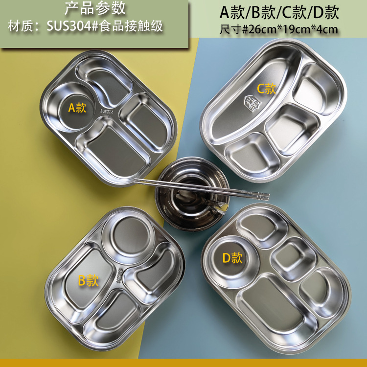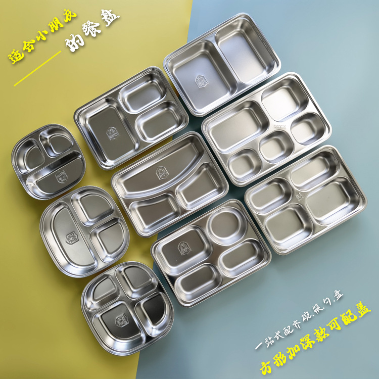 304 스테인레스 스틸 디너 플레이트 어린이 만화 크리 에이 티브 그리드 플레이트 유치원 디너 플레이트 학교 캔틴 패스트 푸드 플레이트스토어 가기
