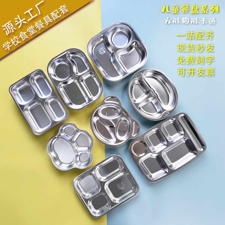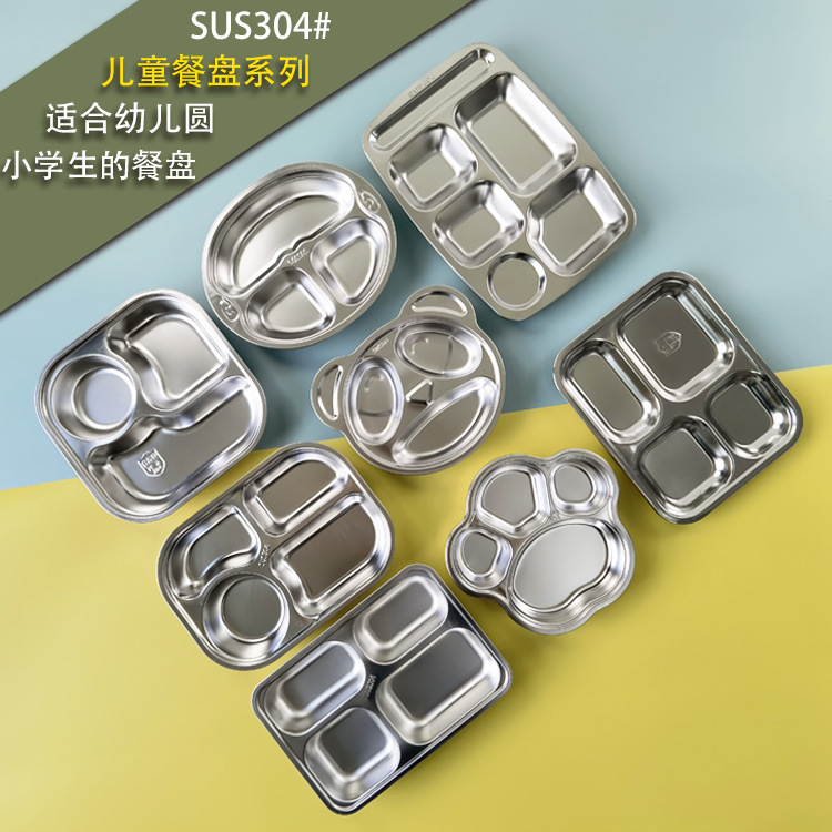 304 스테인레스 스틸 디너 플레이트 어린이 만화 크리 에이 티브 그리드 플레이트 유치원 디너 플레이트 학교 캔틴 패스트 푸드 플레이트