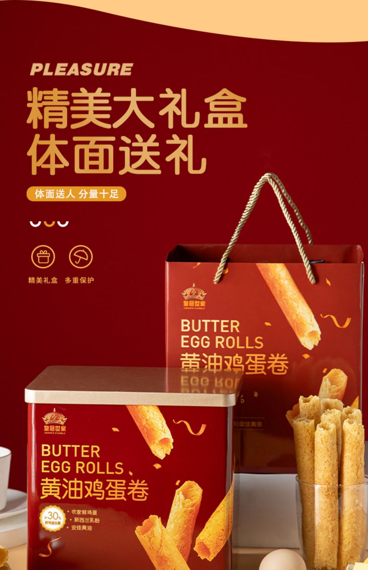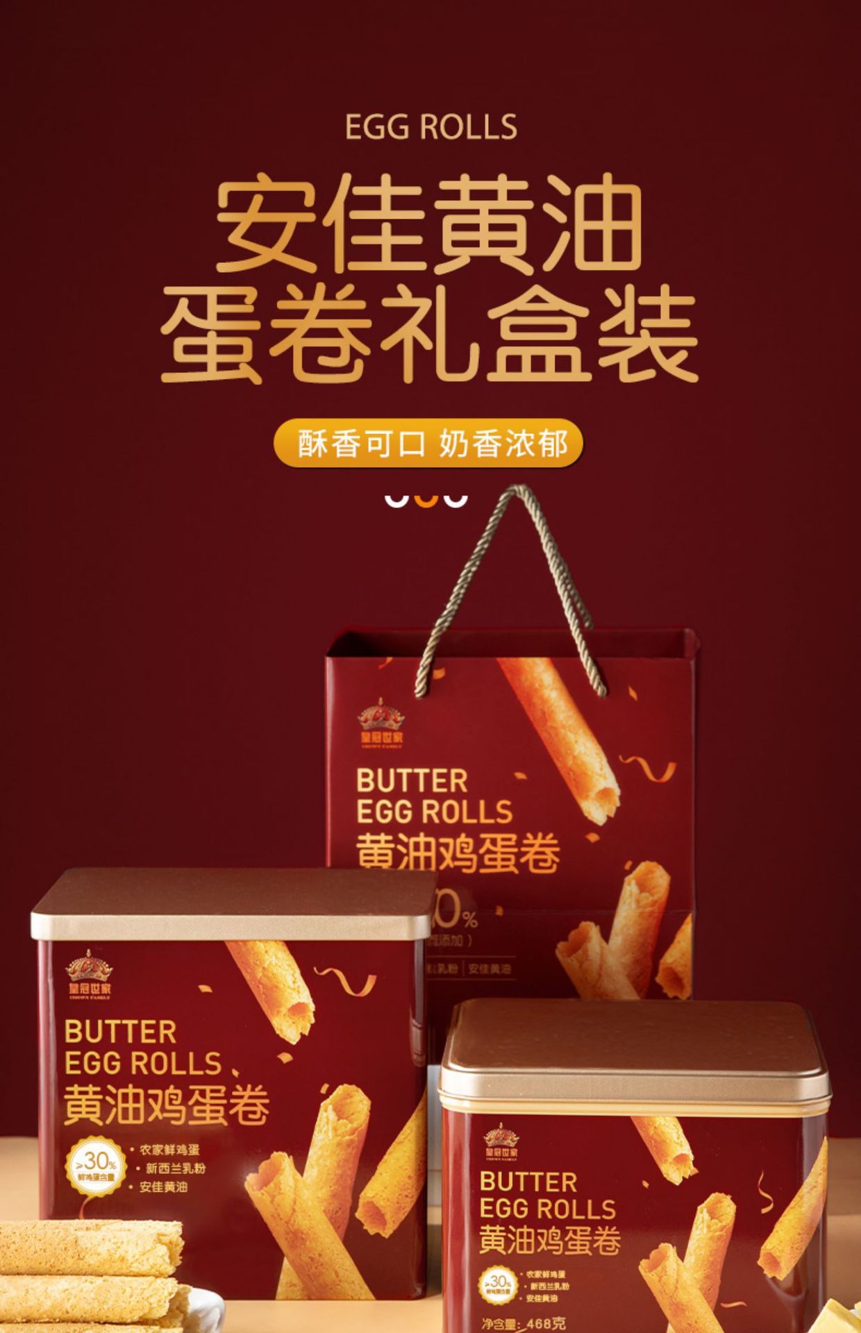 크라운 패밀리 버터 치킨 달걀 롤 선명한 어린이 비스킷 스낵 레저 스낵 선물 패키지 전체 상자 도매 선물 상자