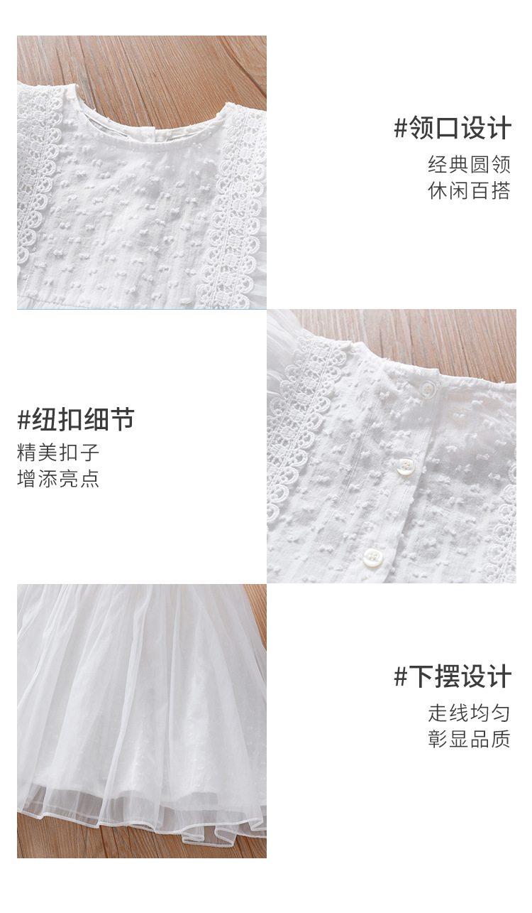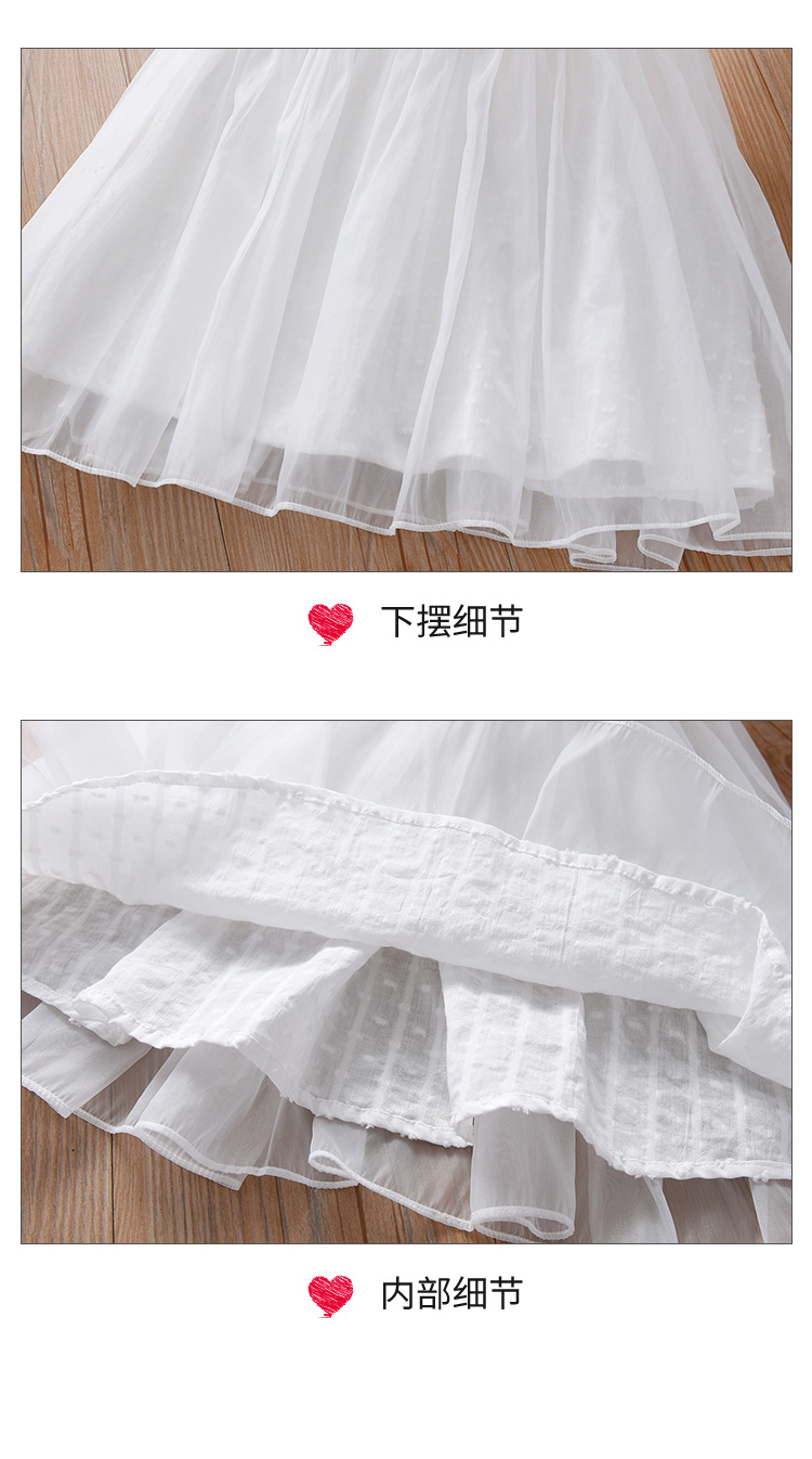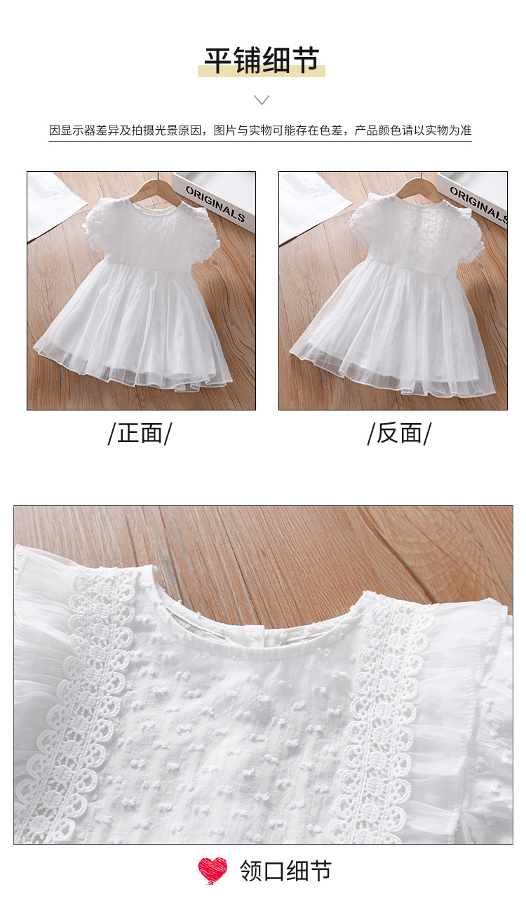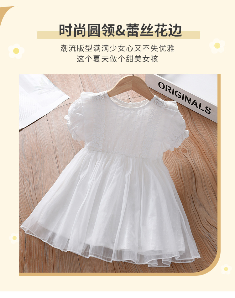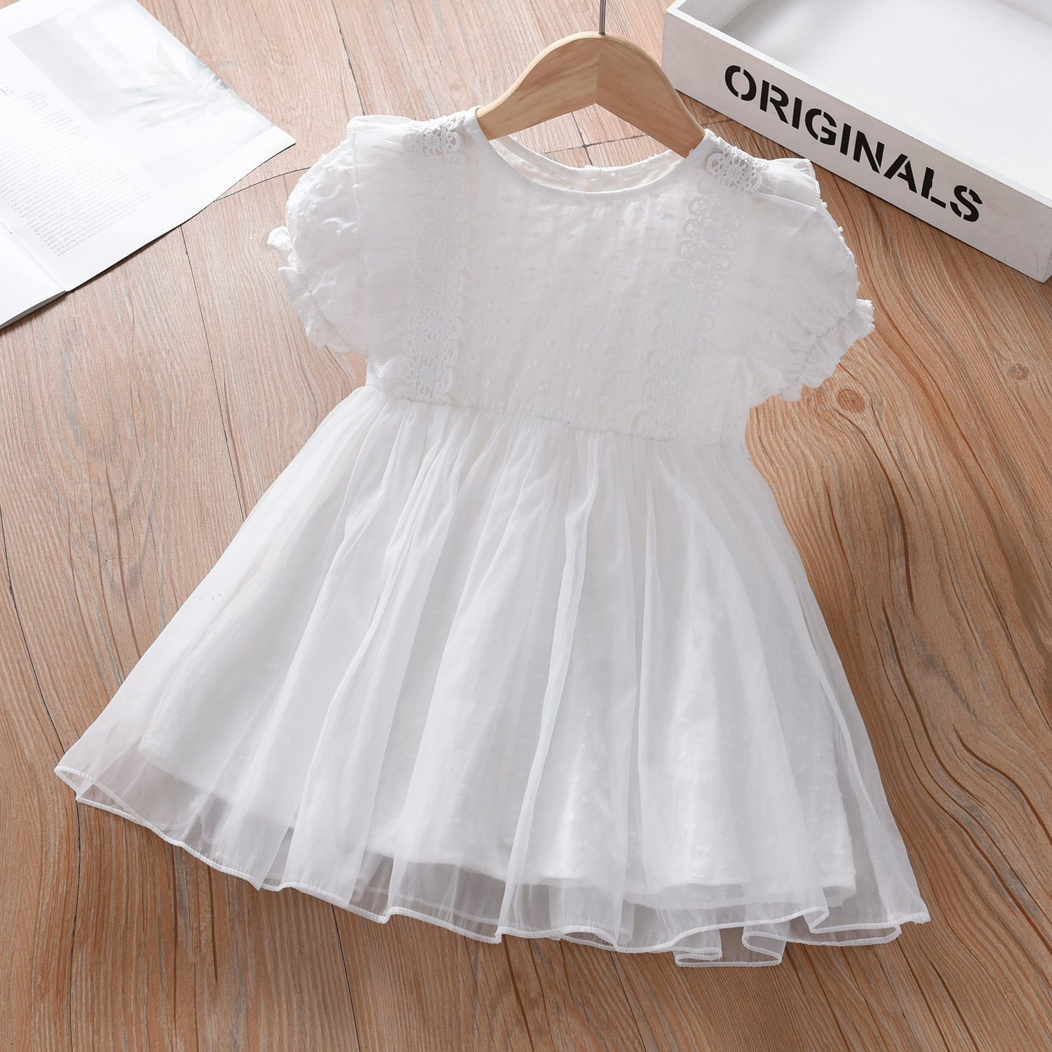 2024 원피스 여름 새 소녀 화이트 스커트 면화 타이-염료 레이스 메쉬 스커트 아기 소녀 외국인 스타일 공주스토어 가기