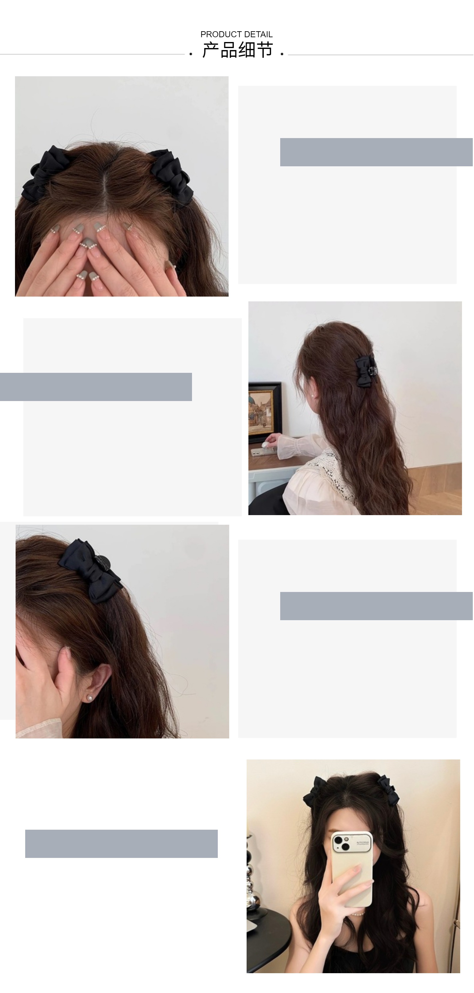 프랑스 스타일 블랙 새틴 활 공주 머리 걸쇠 모든 경기 귀여운 스몰 사이즈 여자 사이드 프린지 프린지 헤어핀스토어 가기
