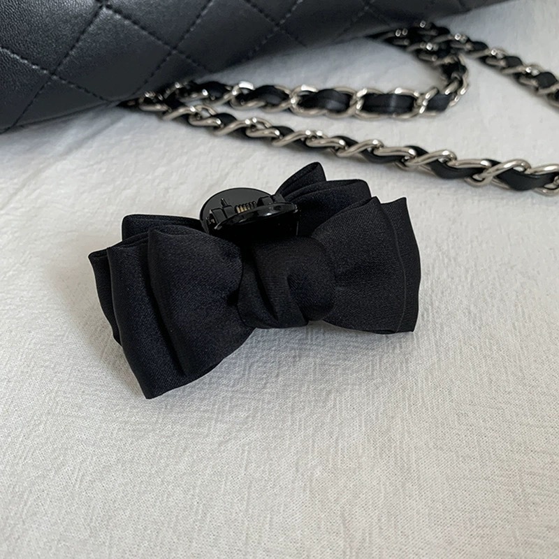 프랑스 스타일 블랙 새틴 활 공주 머리 걸쇠 모든 경기 귀여운 스몰 사이즈 여자 사이드 프린지 프린지 헤어핀