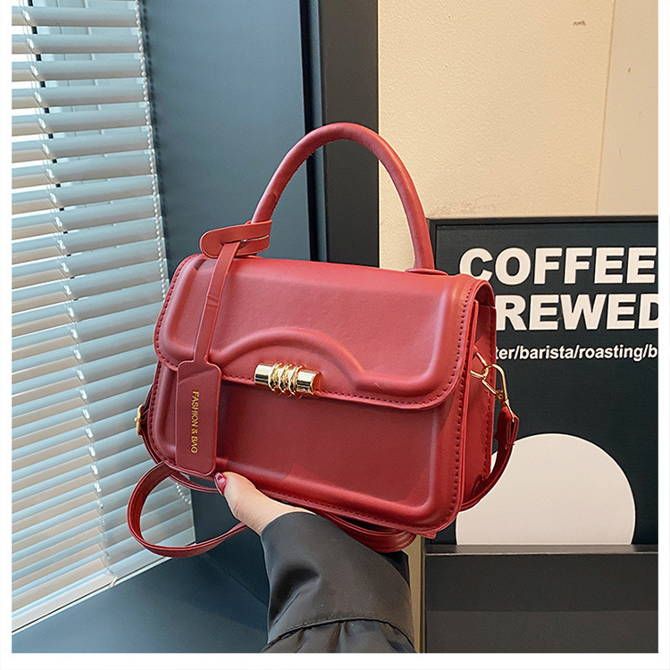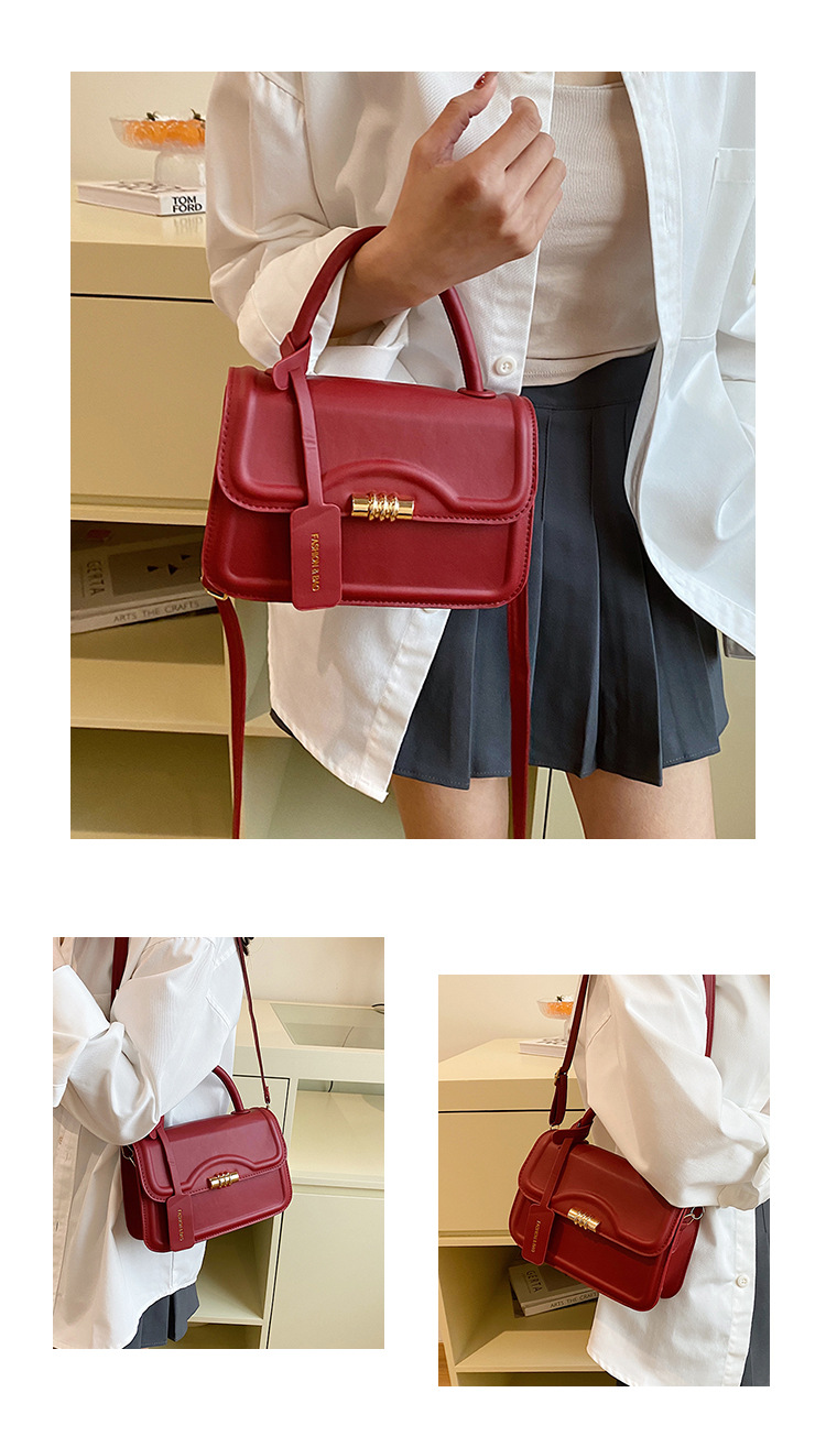 작은 광장 가방 여성의 새로운 솔리드 컬러 플랩 주름 핸드백 틈새 디자인 대나무 자물쇠 가방 어깨 크로스 바디 백