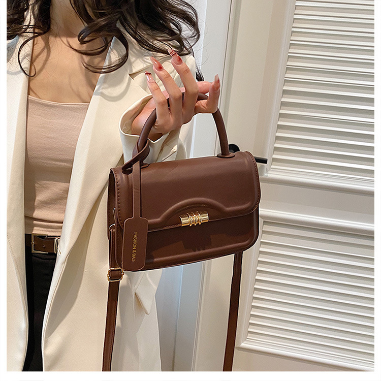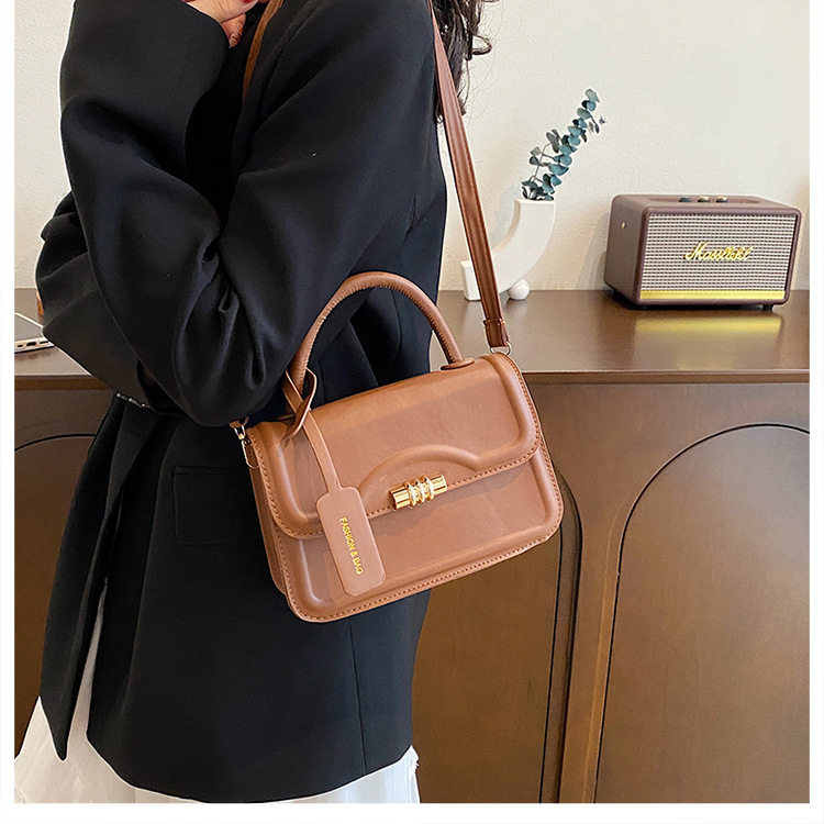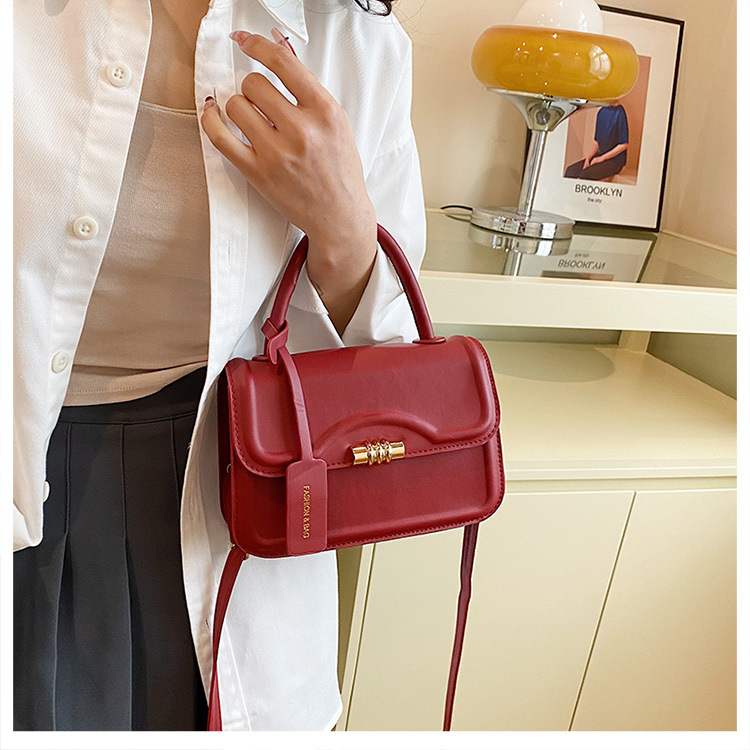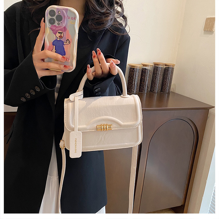 작은 광장 가방 여성의 새로운 솔리드 컬러 플랩 주름 핸드백 틈새 디자인 대나무 자물쇠 가방 어깨 크로스 바디 백스토어 가기