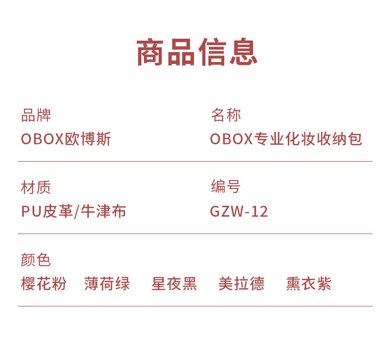 OBOX 높은 색상 가치 대용량 화장품 가방 벚꽃 12 인치 하이 퀄리티 메이크업 가방 라이트 미러 여행 보관 가방스토어 가기