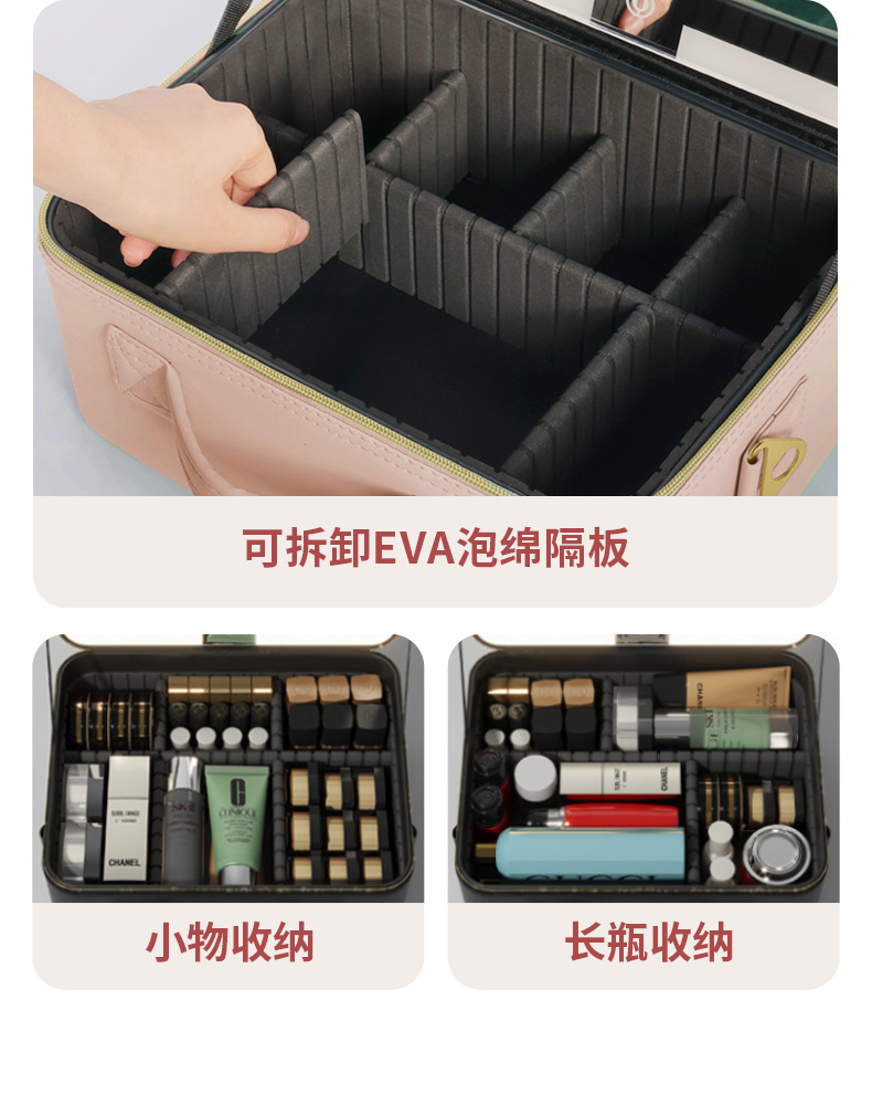 OBOX 높은 색상 가치 대용량 화장품 가방 벚꽃 12 인치 하이 퀄리티 메이크업 가방 라이트 미러 여행 보관 가방