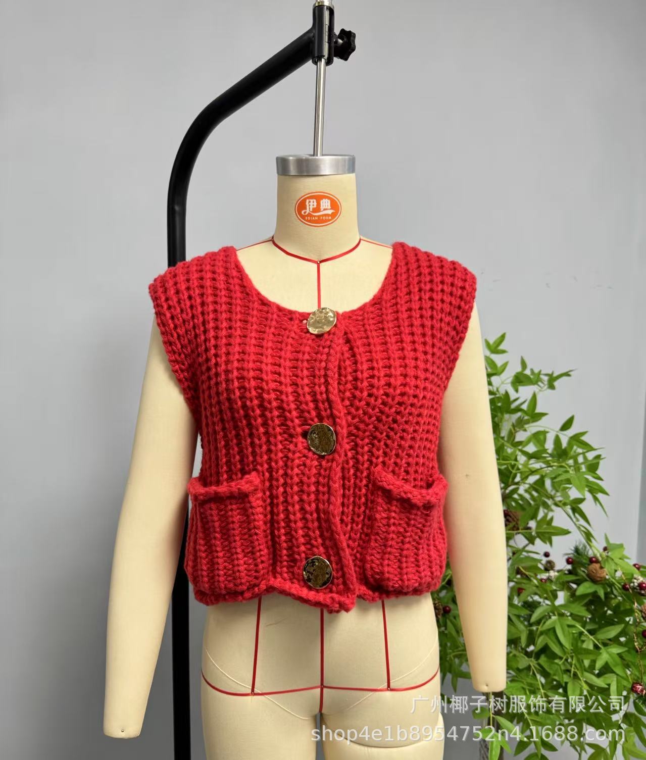 AliExpress의 인기 있는 국경 간 대외 무역 유럽 및 미국 의류 ZA 여름 신작 스트리트 패션 두꺼운 바늘 조끼 니트 조끼