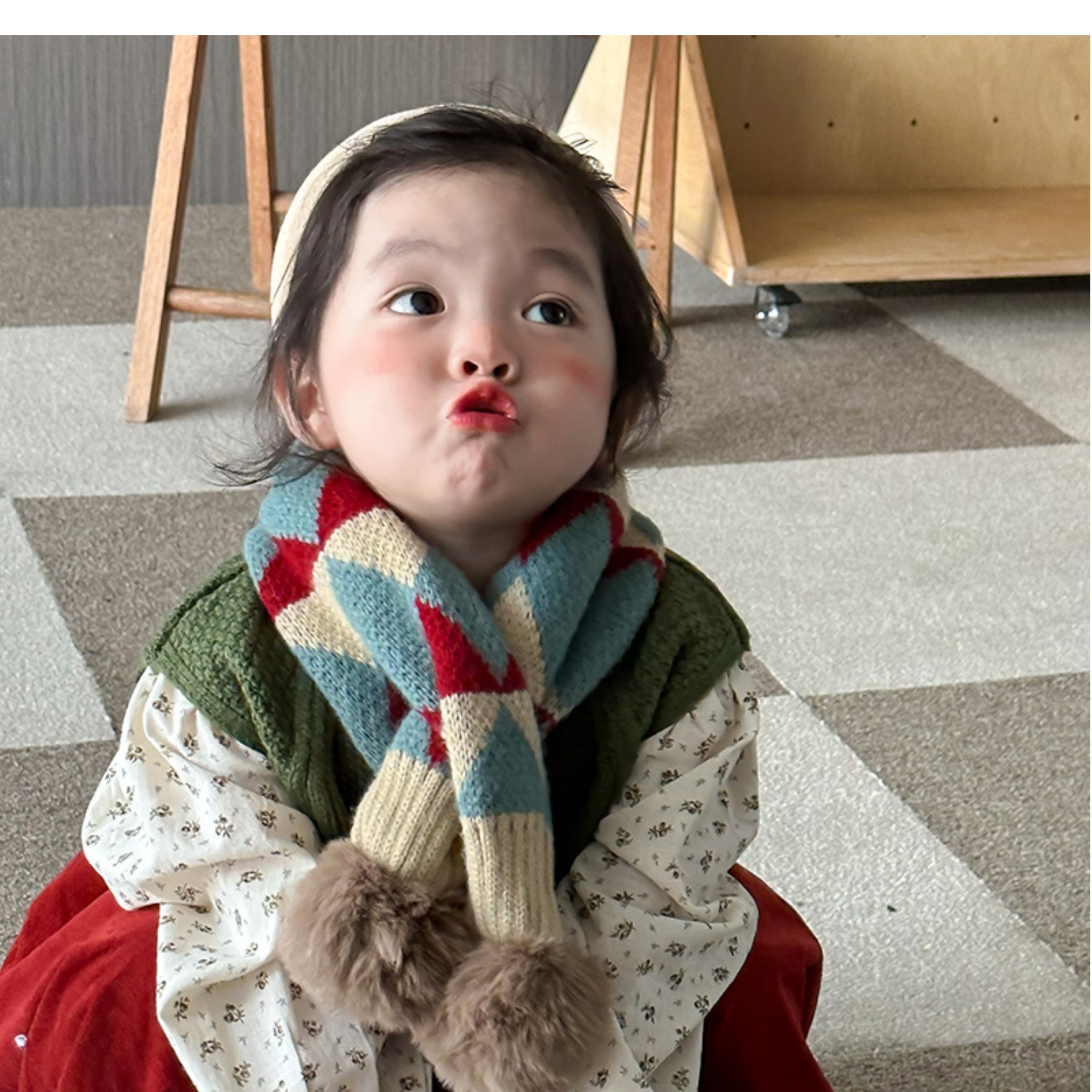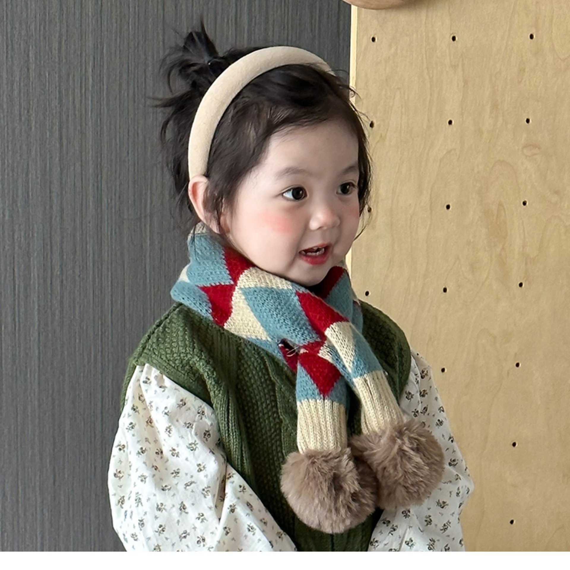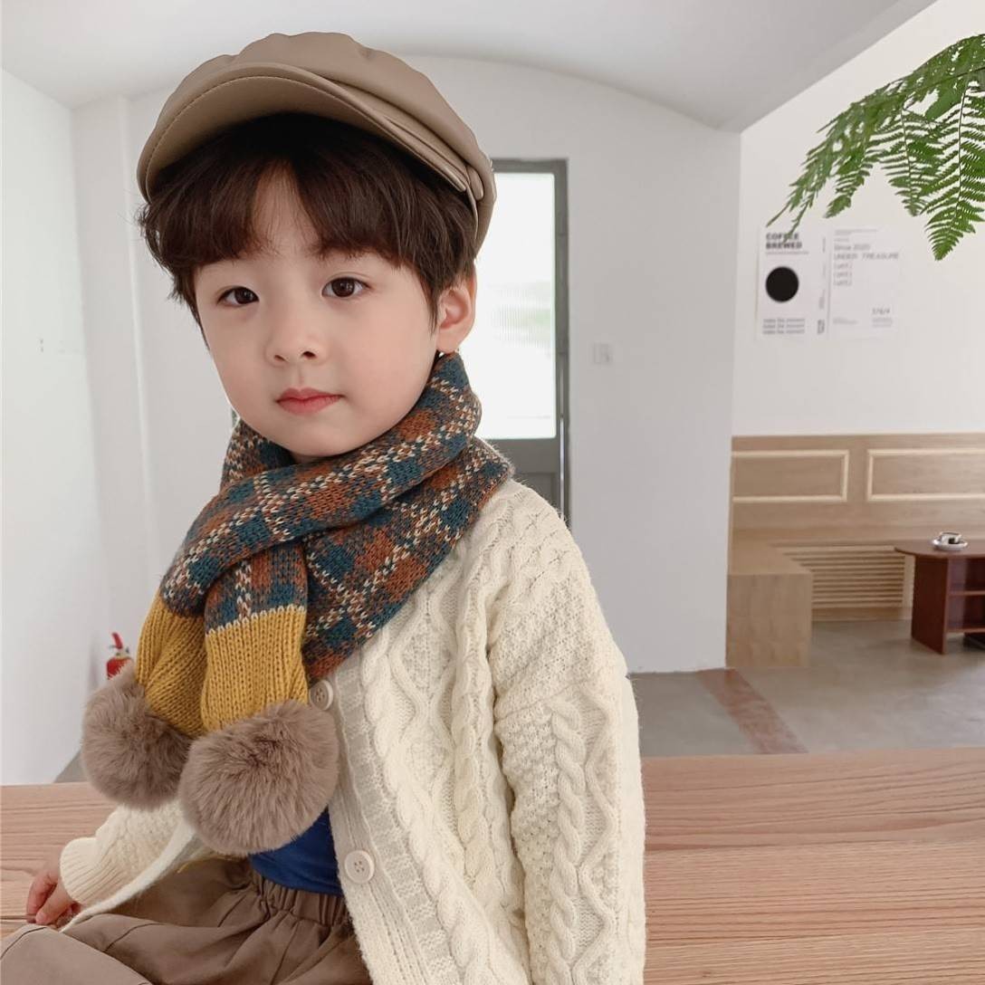소년 소녀를위한 어린이 스카프 패션 서양식 크로스 오버 스카프 가을과 겨울 한국 스타일 따뜻한 명암 아기 스카프 트렌디스토어 가기