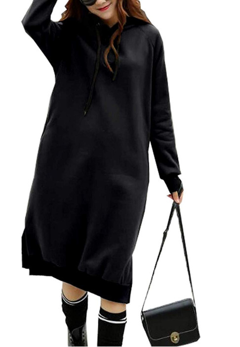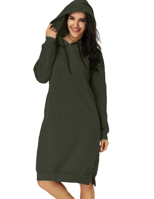2024 국경 간 가을 새로운 유럽과 미국의 단색 플러스 사이즈 풀오버 캐주얼 긴 소매 후드 여성 의류