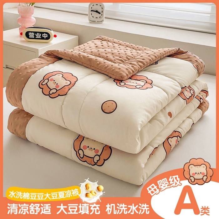 클래스 A 세척 된 면화 이중층 원사 콩 콩 공조 이불 여름 기계 세탁기 어린이 얇은 이불 여름 시원한 이불 도매