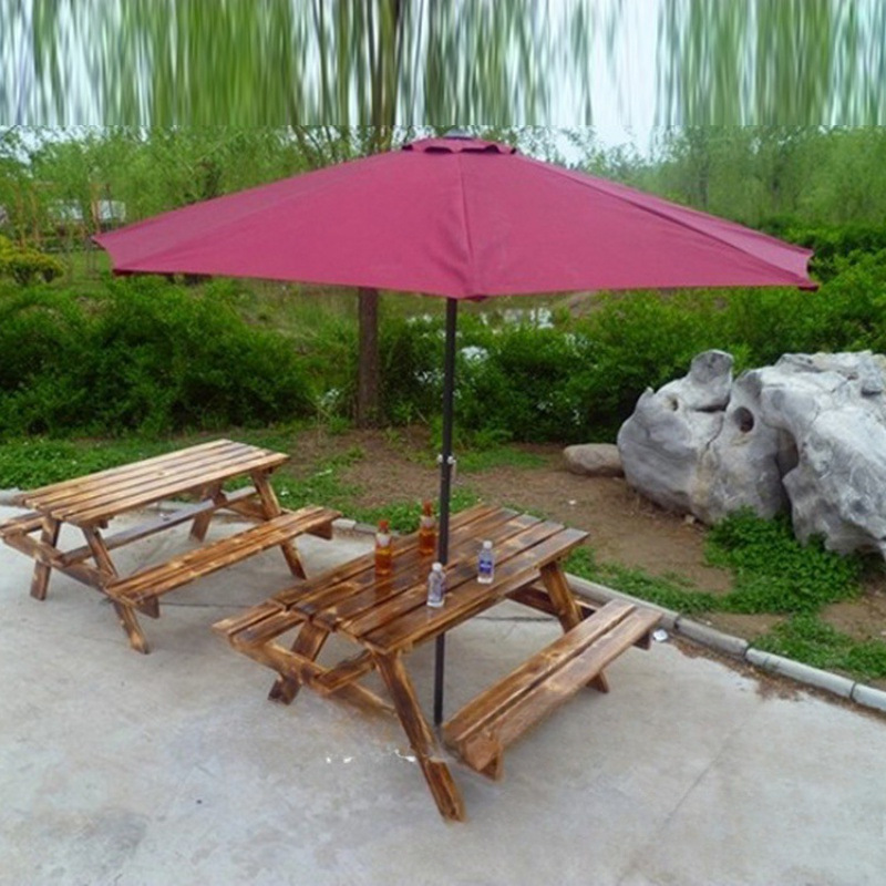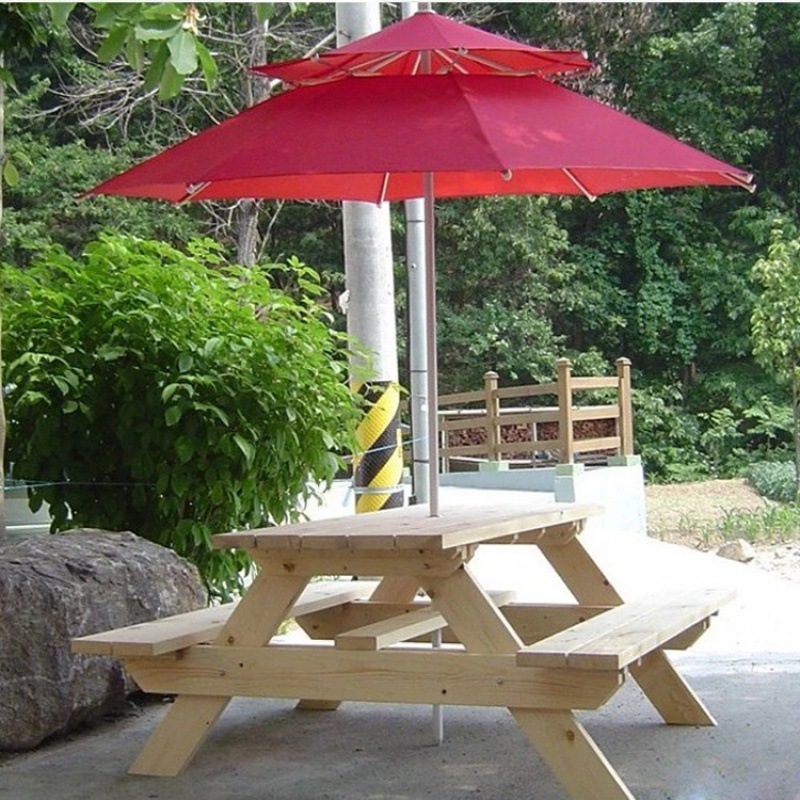 야외 테이블과 의자 조합 우유 차 커피 숍 안뜰 야외 매점 결합 된 식탁 및 의자 우산 공원 솔리드 우드 부식 방지스토어 가기