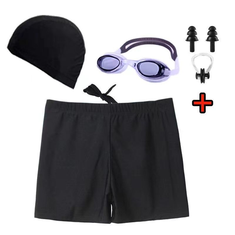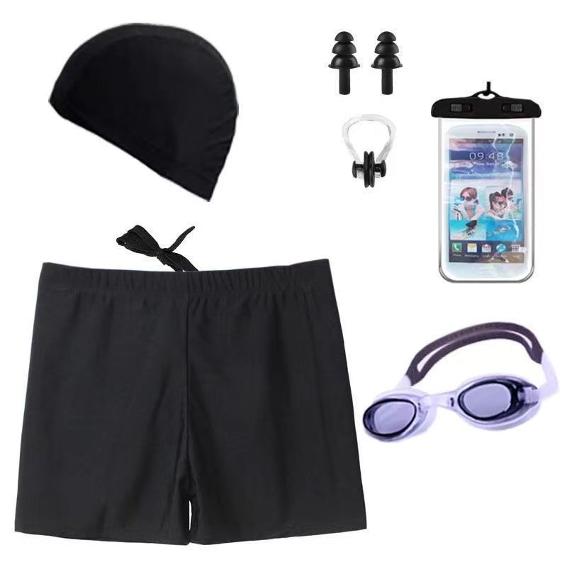 • 검정색 수영 트렁크 + 수영 모자 + 코 클립 귀마개 + 수영 고글