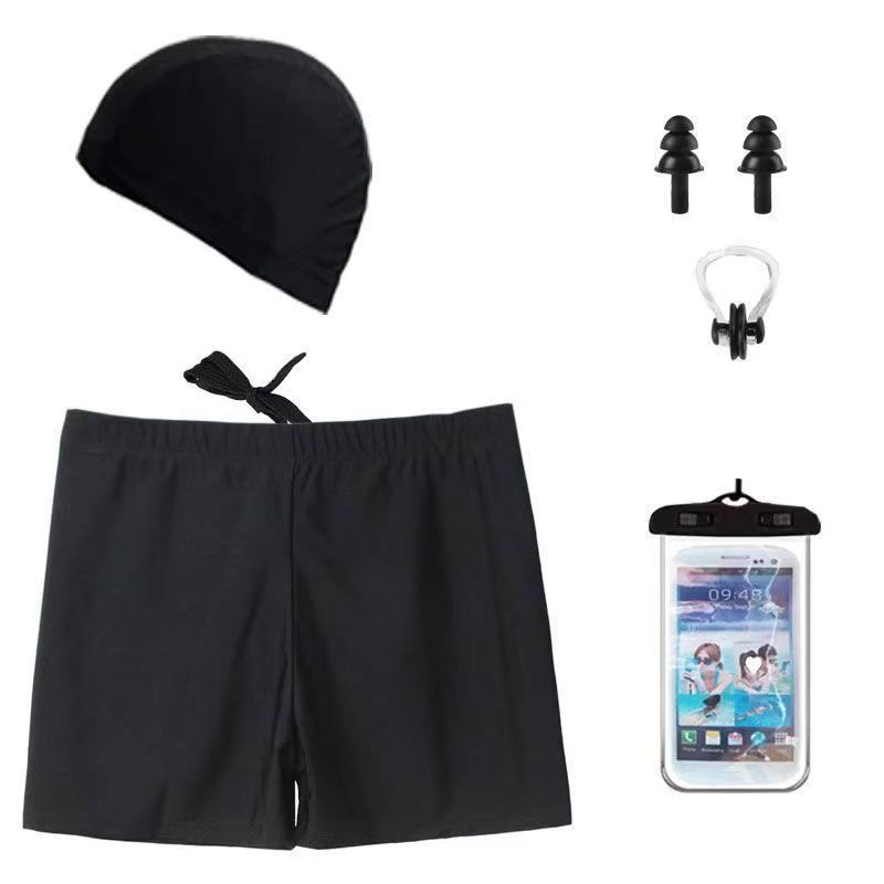 • 검정색 수영 트렁크 + 수영 모자 + 코 클립 귀마개