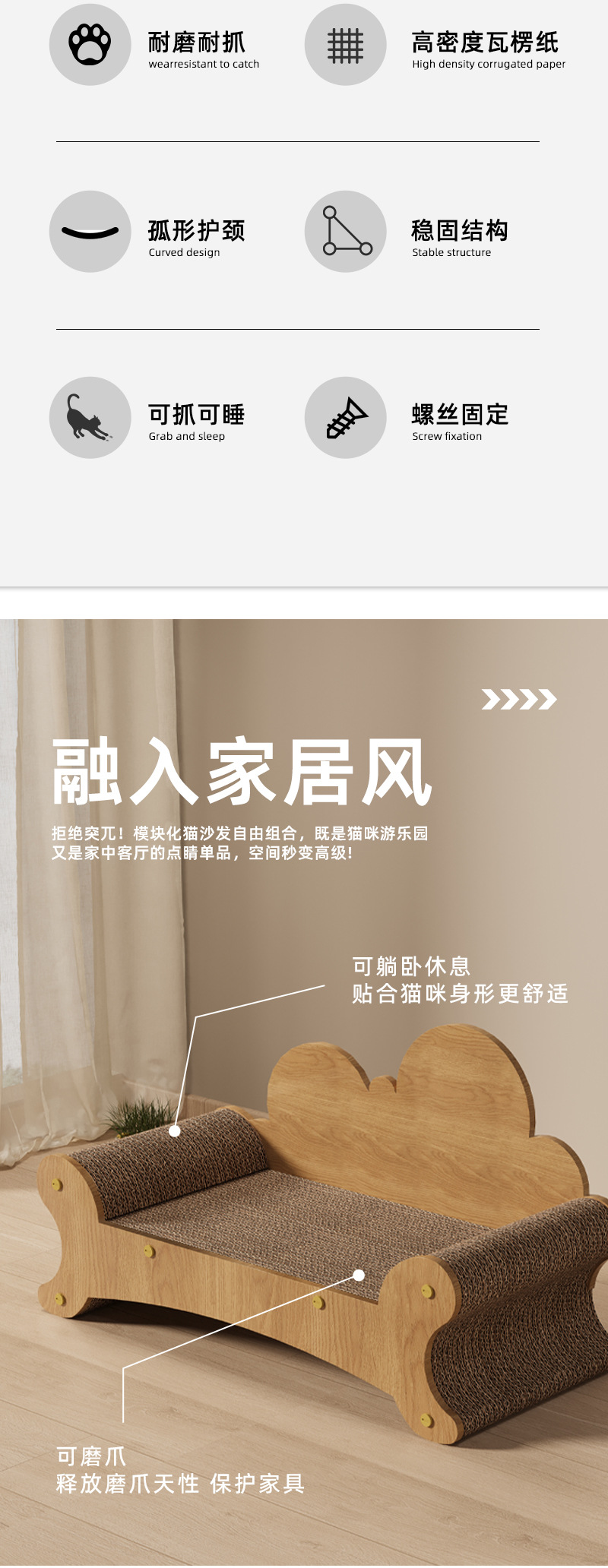 • 달 보트 고양이 긁는 기둥 오크 대형