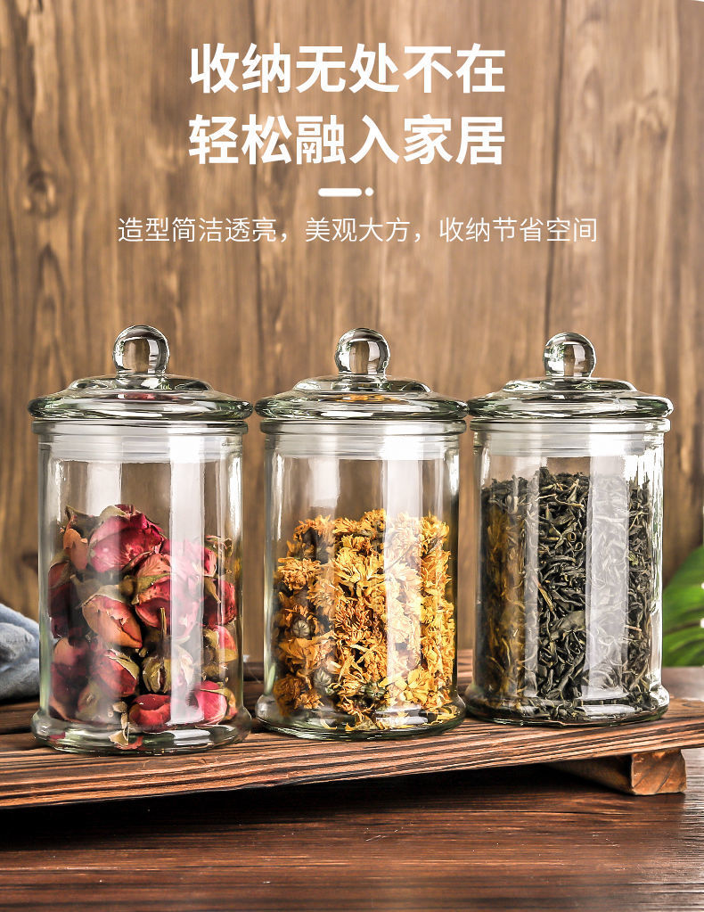 유리 투명한 둥근 차 항아리 밀봉 된 항아리 저장 항아리 휴대용 말린 과일 곡물 향 차 항아리