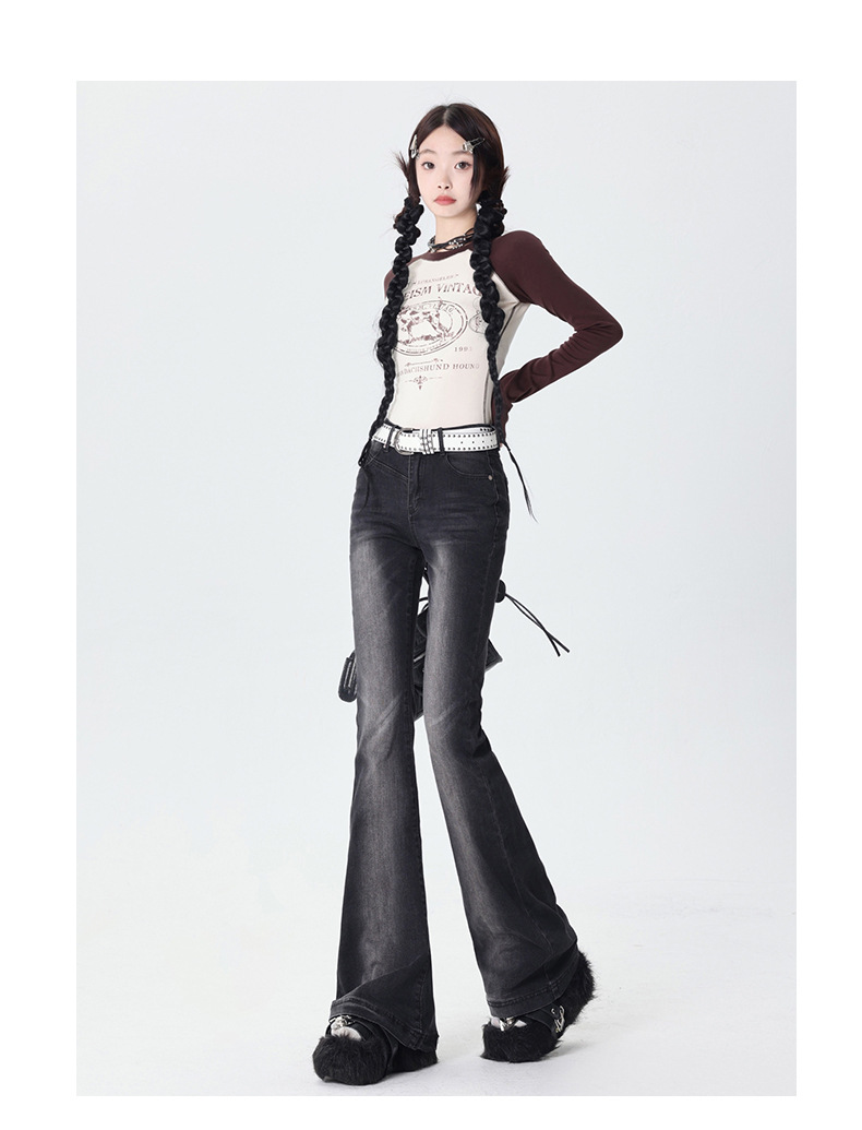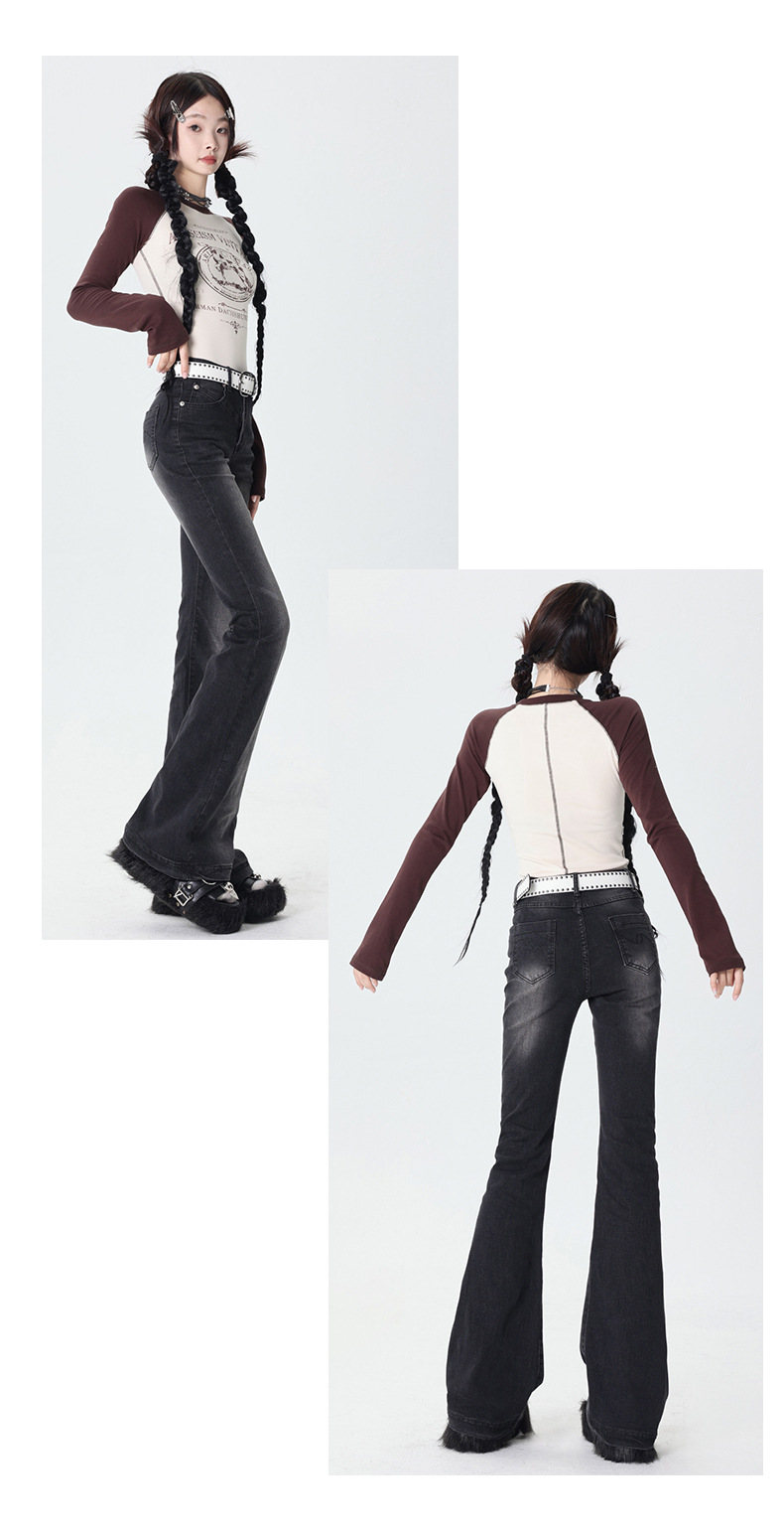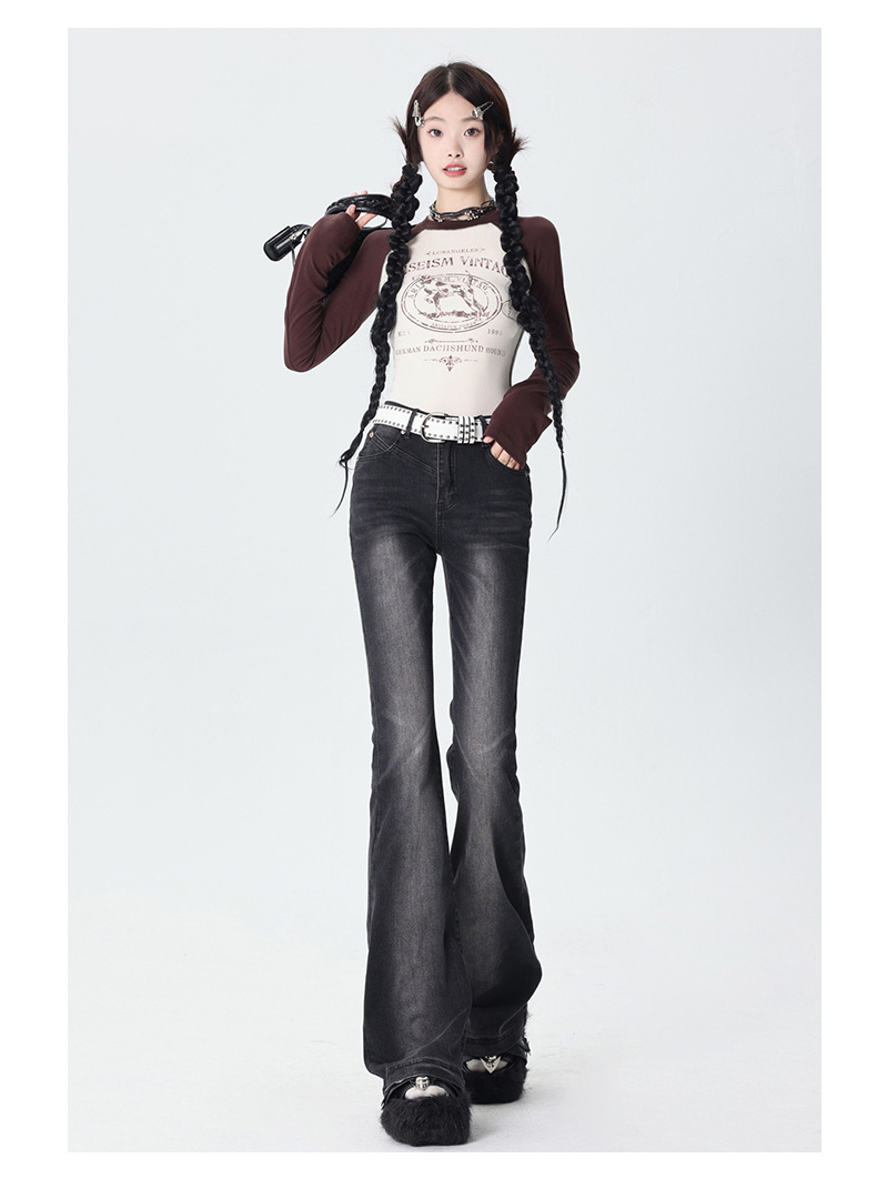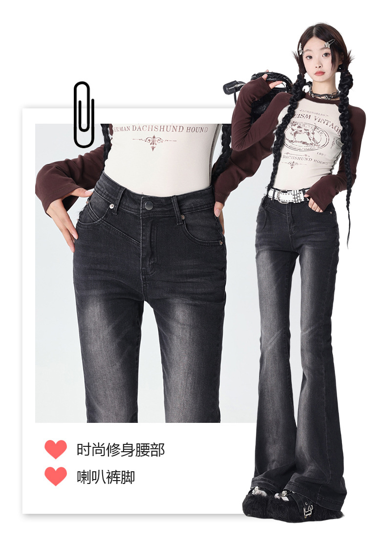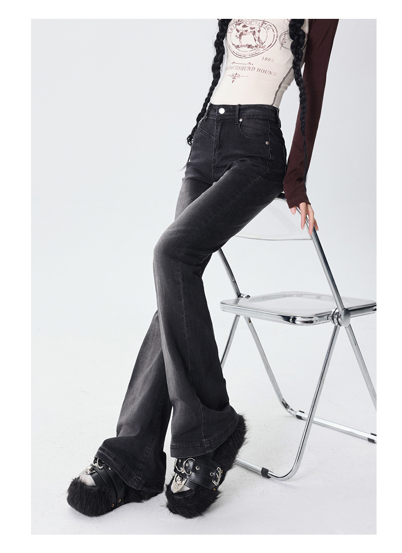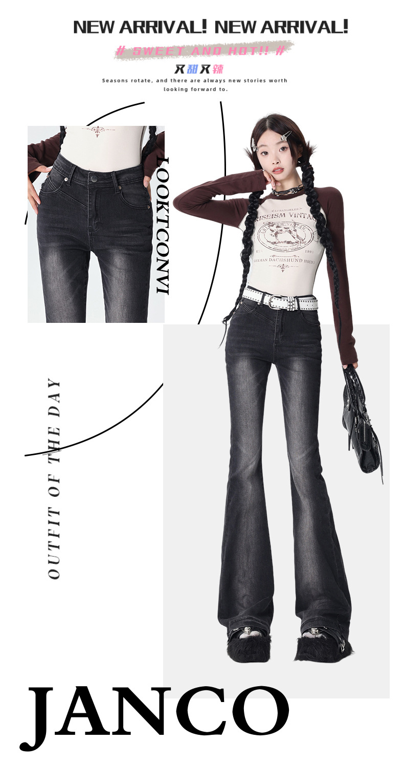 마이크로 플레어 청바지 여성 스파이스 걸스 2024 새로운 닥쳐 높은 허리 탄성 슬림 룩 작은 말굽 바지 올매치스토어 가기