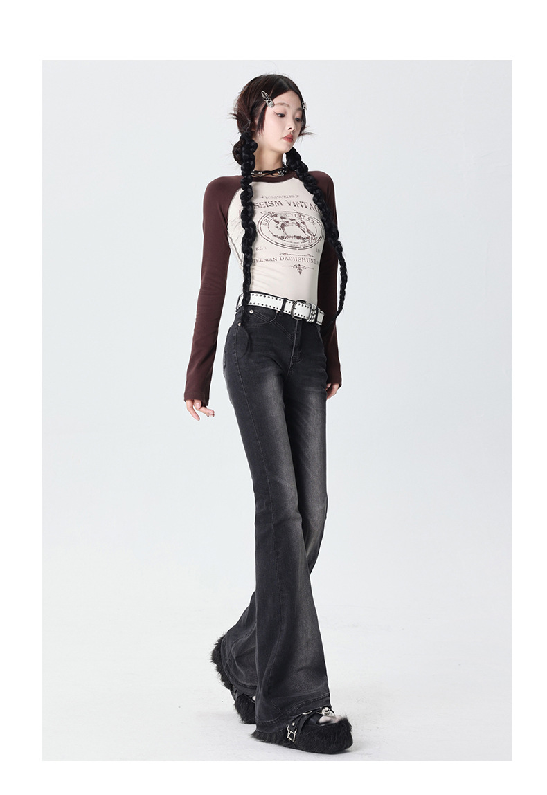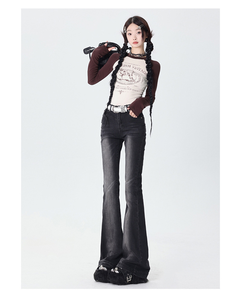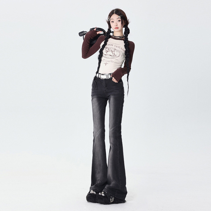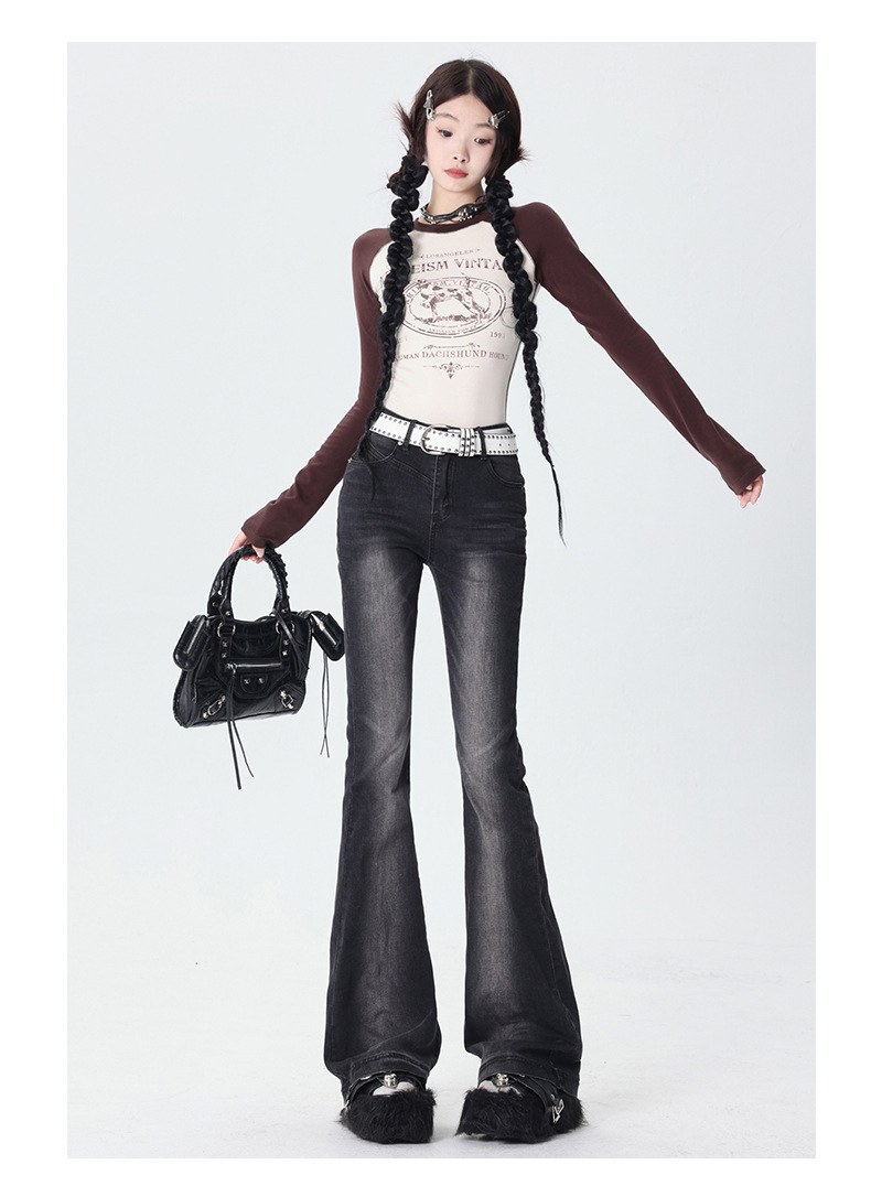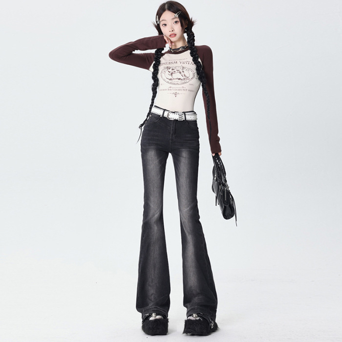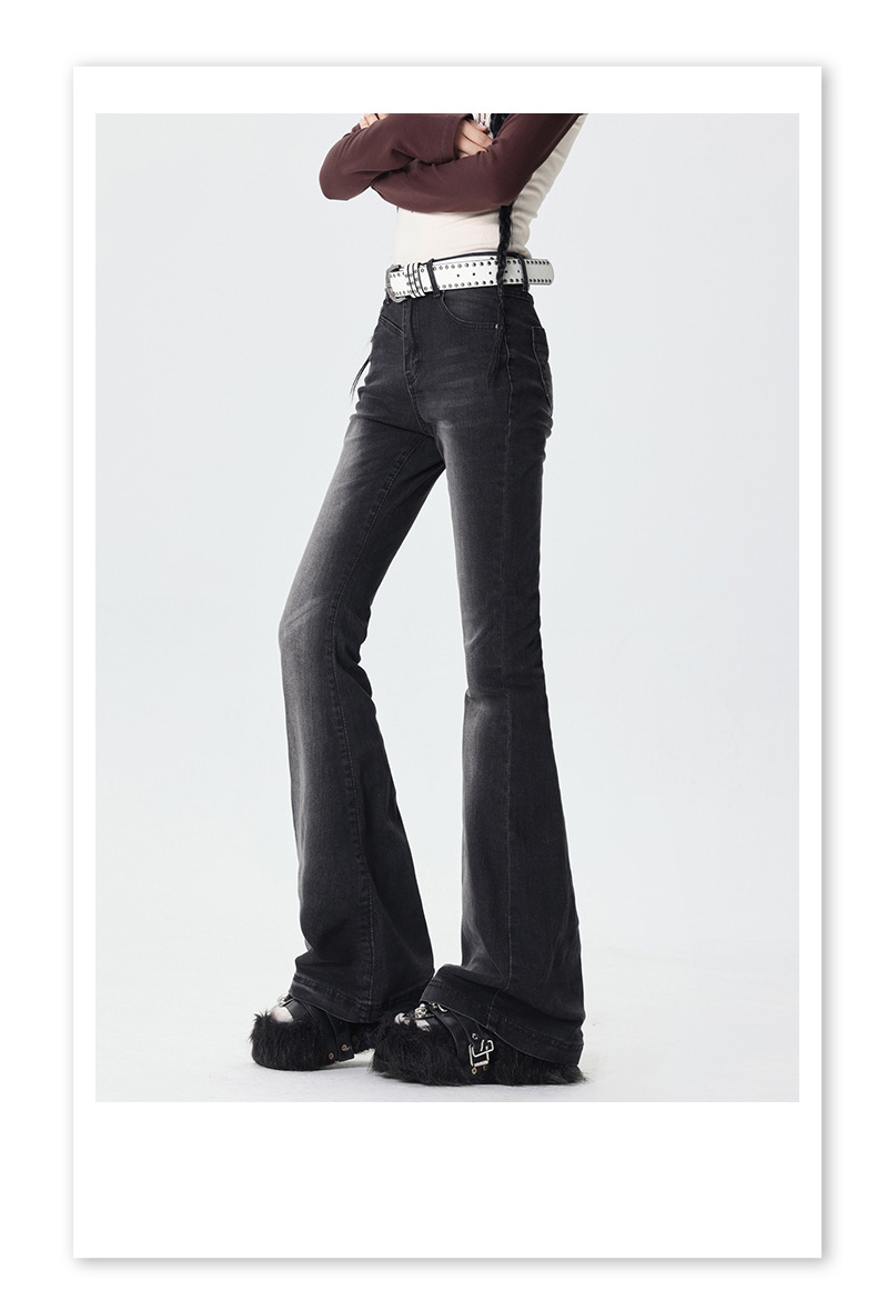 마이크로 플레어 청바지 여성 스파이스 걸스 2024 새로운 닥쳐 높은 허리 탄성 슬림 룩 작은 말굽 바지 올매치
